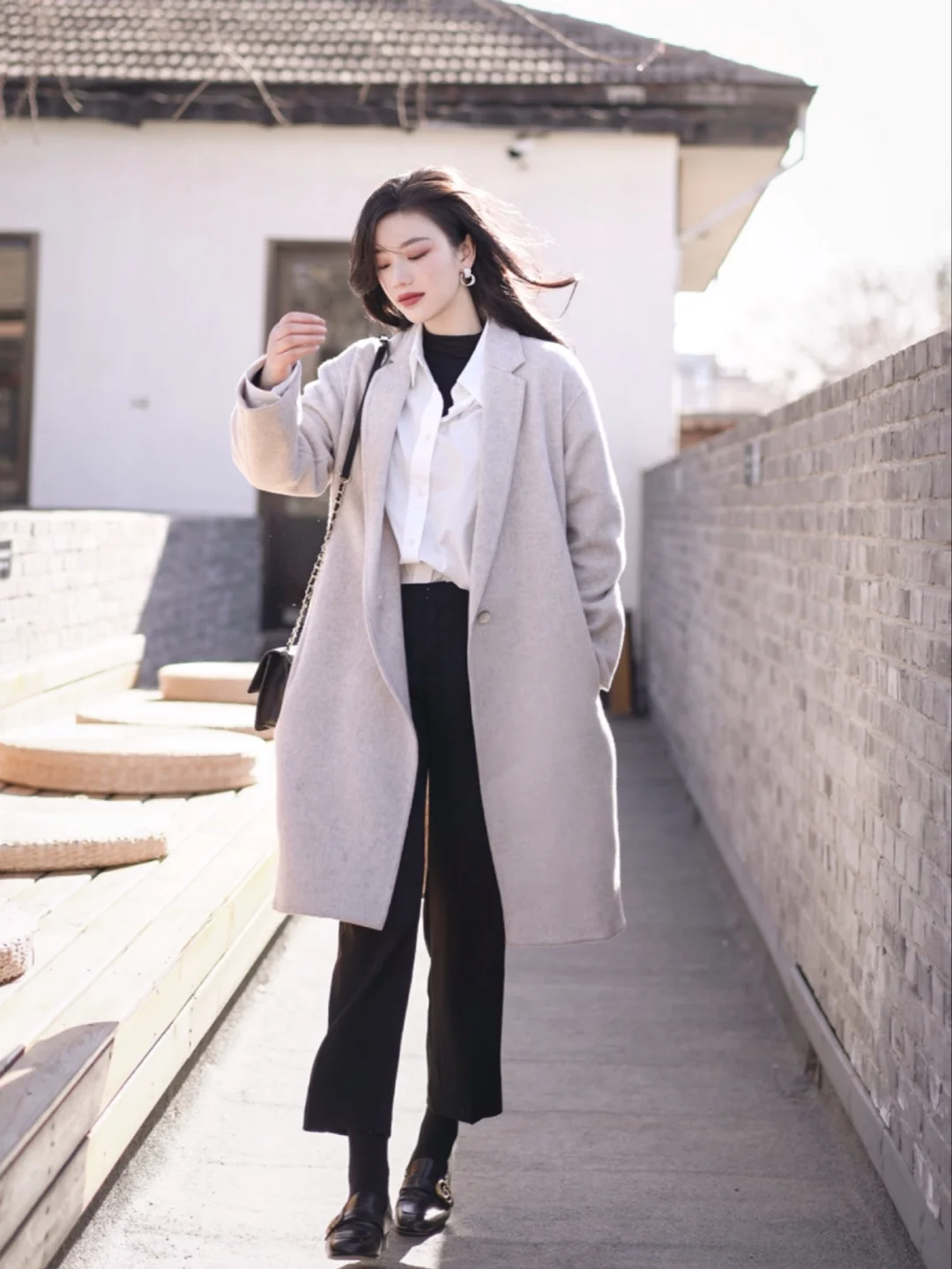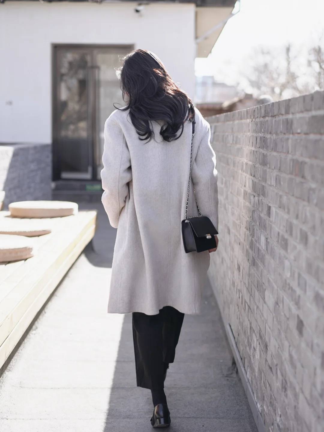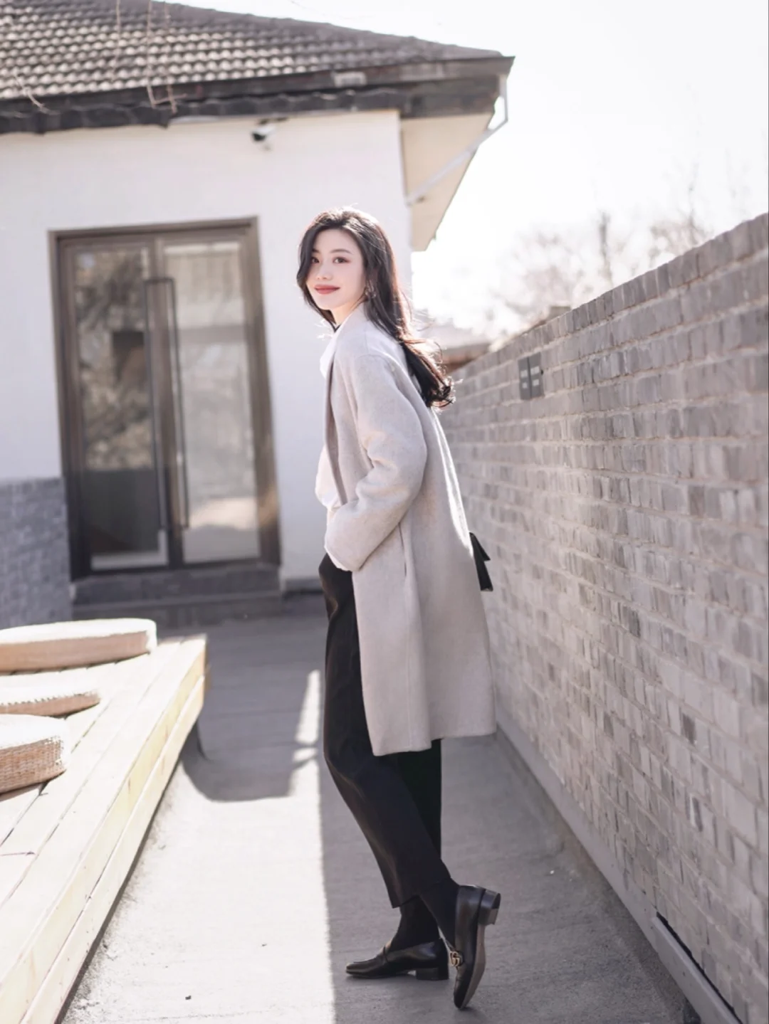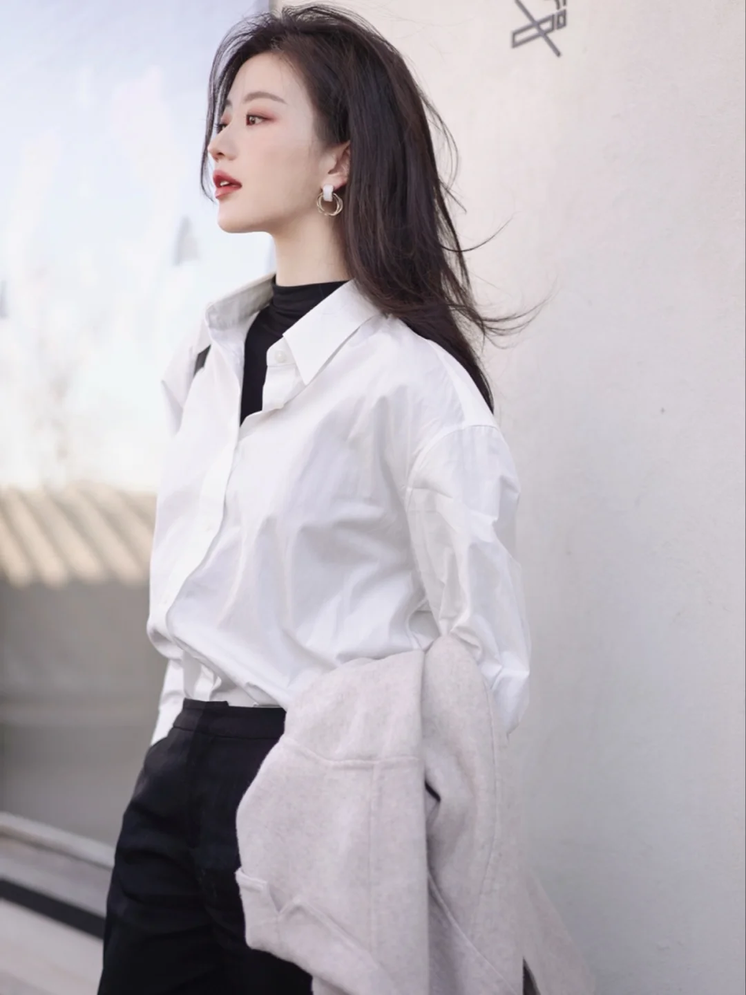 🚩黑白灰的搭配永远给人一种气势上的自信,加上长波浪发型的温柔和简单且精致的饰品,距离5m就能嗅到女人味的气息了,不管正面背面,都是大方的温柔。