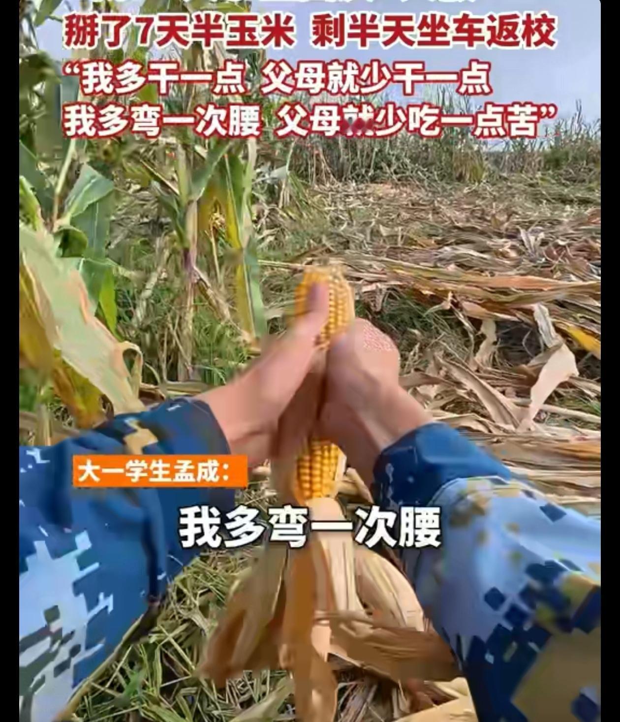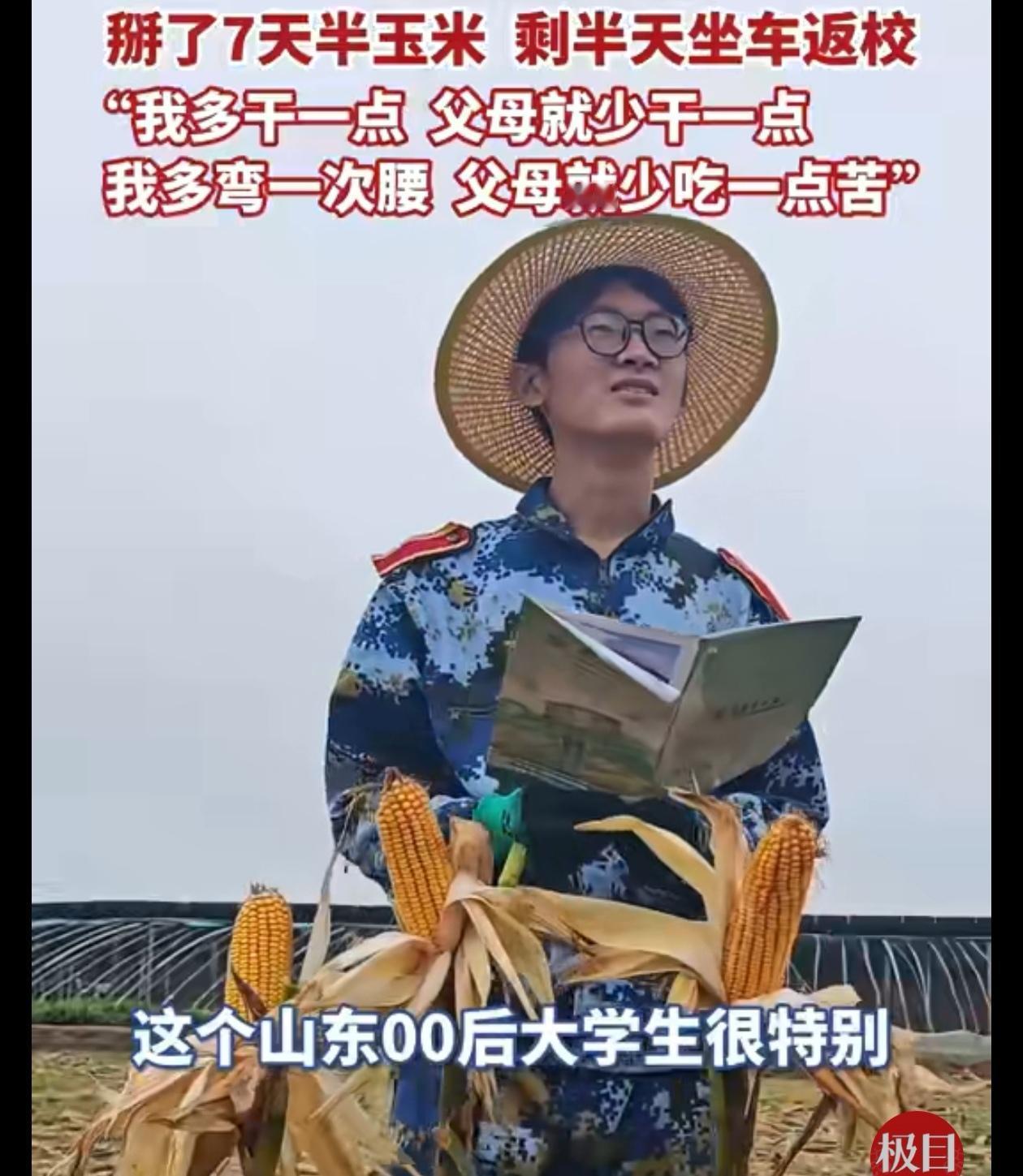 山东一大学生国庆8天假掰了7天半玉米,本人称“自己多弯一次腰父母就少吃一点苦”![赞]