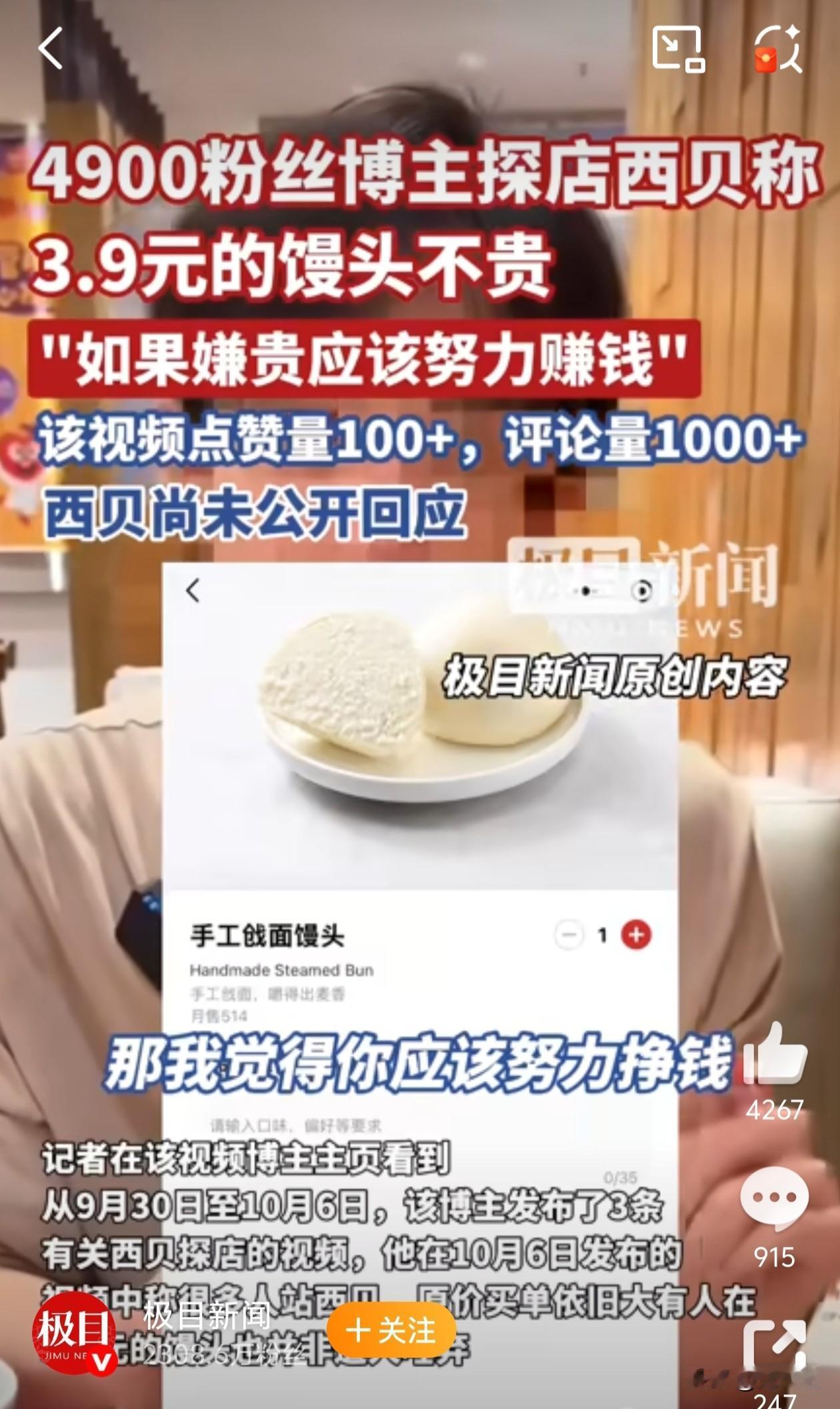 一觉醒来,佳琦哥发现自己添了个“好徒儿”? 西贝的馒头终于顶住了压力,博主吐槽不成反被全网吐槽,好吧,这波终于轮到这个博主自己反思了…… 4900个粉丝都能叫网红?是不是有粉丝就是网红[笑哭][笑哭][笑哭]行吧,你说你是就是吧,人家大网红好歹拿个眉笔说事,这小卡拉米就有样学样,只能拿馒头说事了[抠鼻] 西贝尚未公开回应,不回应就对了,西贝之前被喷就是因为什么事都要回应。 说白了这人纯属来蹭流量黑西贝的,一个馒头,卖多少钱人家自己定价也没强迫你吃,西贝现在遍体鳞伤,最近都已经低调很多了,有问题就整改呗,相信贾总痛定思痛,正在卧薪尝胆准备大干一场。 奉劝这样的人,拍视频做自媒体也得有底线:你觉得不贵是你的事,那是你的私人感受,不要强行绑架别人必须认同。 这个社会大家都不容易,不要阴阳怪气挖苦和讽刺那些经济能力不如你的人。