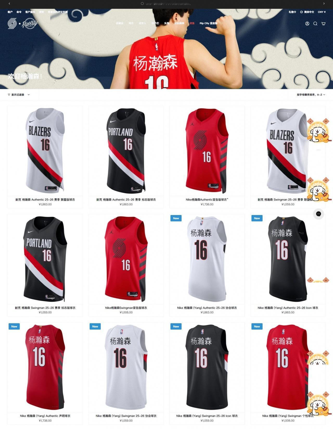 杨瀚森新球衣被开拓者和NBA推出,球迷版都人民币1088元 杨瀚森成为开拓者的