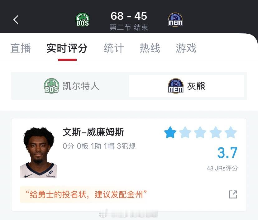 无需多言,下半场布朗应该也歇了。凯尔特人vs灰熊