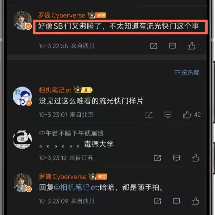 荣耀首席影像工程师在线怒喷网友了,这次竟然说:SB!其实我就想问问,怎么企业的工程师都喷上用户了?难道不应该对自己的产品和技术有信心吗?或者和小米一样,听用户反馈,和消费者交朋友,所以我觉得这企业的格局也是可以的!