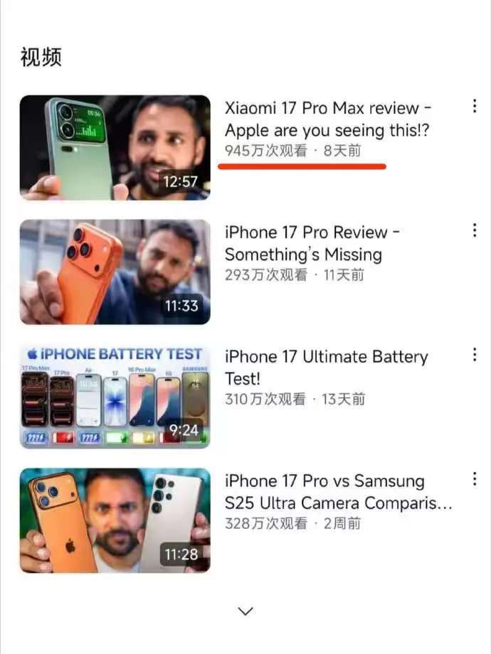 小米这次是真的出息了!因为国外一位数码博主测试小米17系列,没想到这个视频播放量快1000w了,比测试苹果和三星旗舰机加在一起播放量还要高一些!目前来看,小米17系列在国外口碑也很好,毕竟创新方面确实吸引一些用户关注,只是不知道销量方面能不能超过苹果。