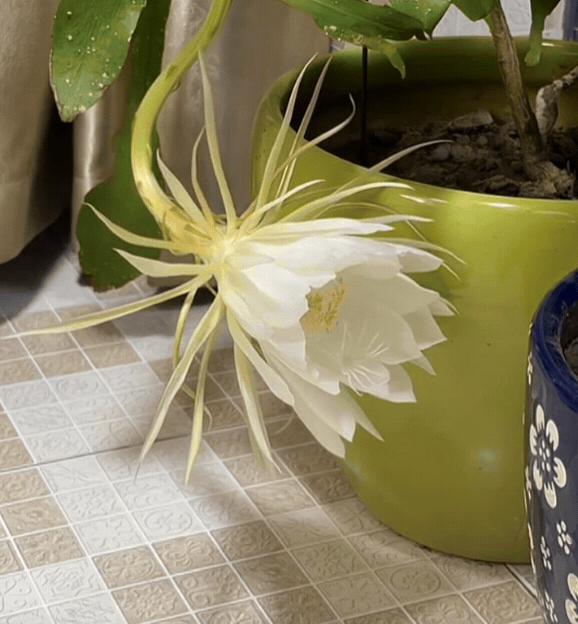 江苏一女子准备关灯休息,突然发现妈妈种的昙花有动静,她走近一瞧,发现是昙花要开了