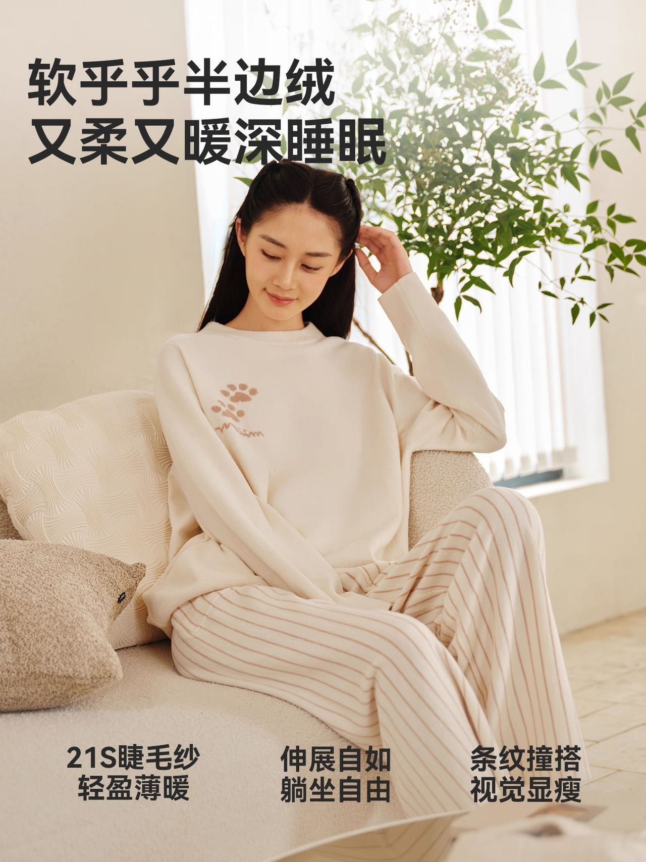 猫人暖绒绒家居服松弛感穿搭一家子想穿得整齐有氛围,选家居服总踩坑。要么穿得不协调,要么面料硬邦邦的不舒服。猫人这套太懂了!能搭成情侣款、全家穿也合适,款式不挑人,摸着手感软到不行。