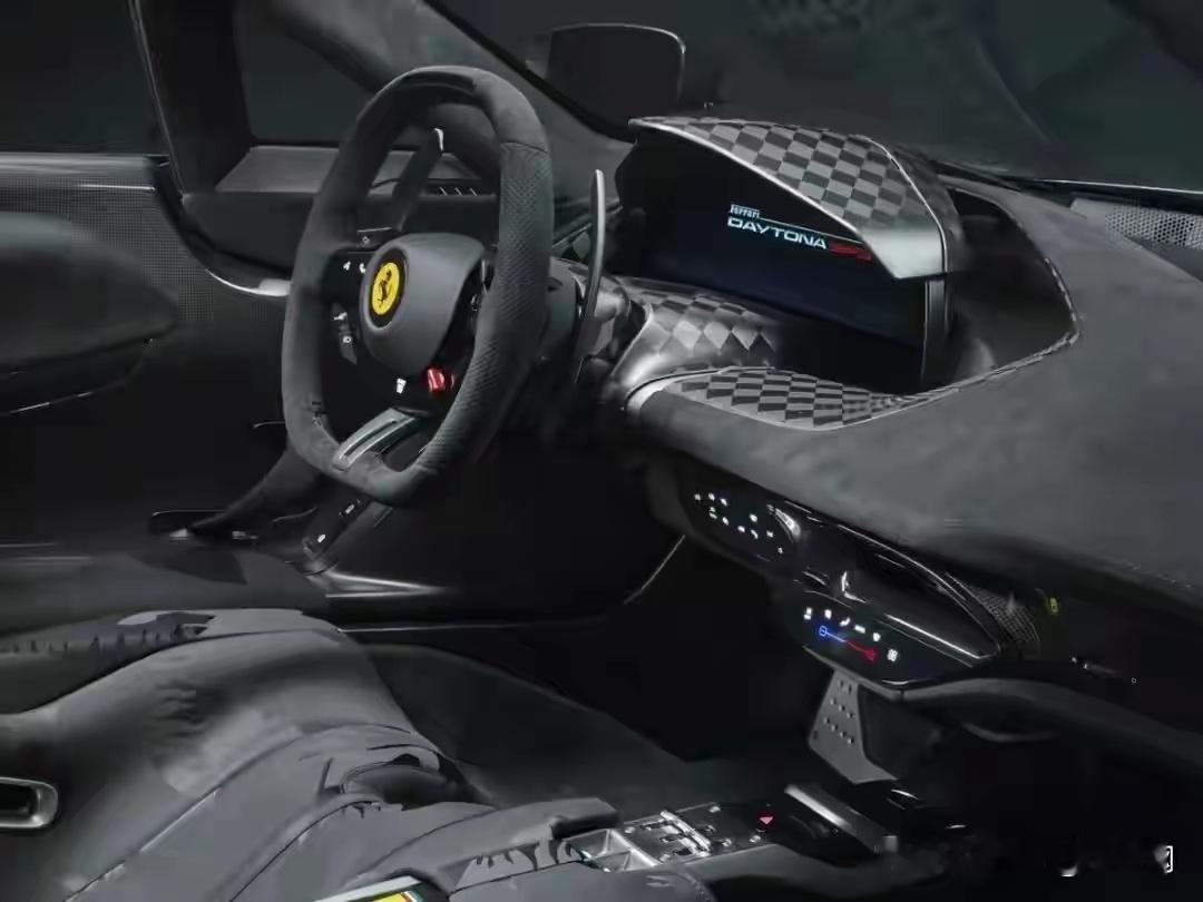 大v聊车 整体造型较为简洁,从330 P3/4、312 P以及350 Can - Am等经典车型中汲取灵感。配备三辐式多功能方向盘以及大尺寸液晶仪表,可实现车辆大部分操作。拨杆式金属换挡机构复古感十足,是向经典致敬的设计。主驾部分仪表盘面积减少,数字仪表盘及UI设计借鉴SF90 Stradale,车手座椅直接连接底盘,灵感来自20世纪60年代赛车,驾驶位置更低且更靠后。座椅采用固定式桶椅,配色和尺寸可定制。