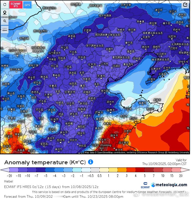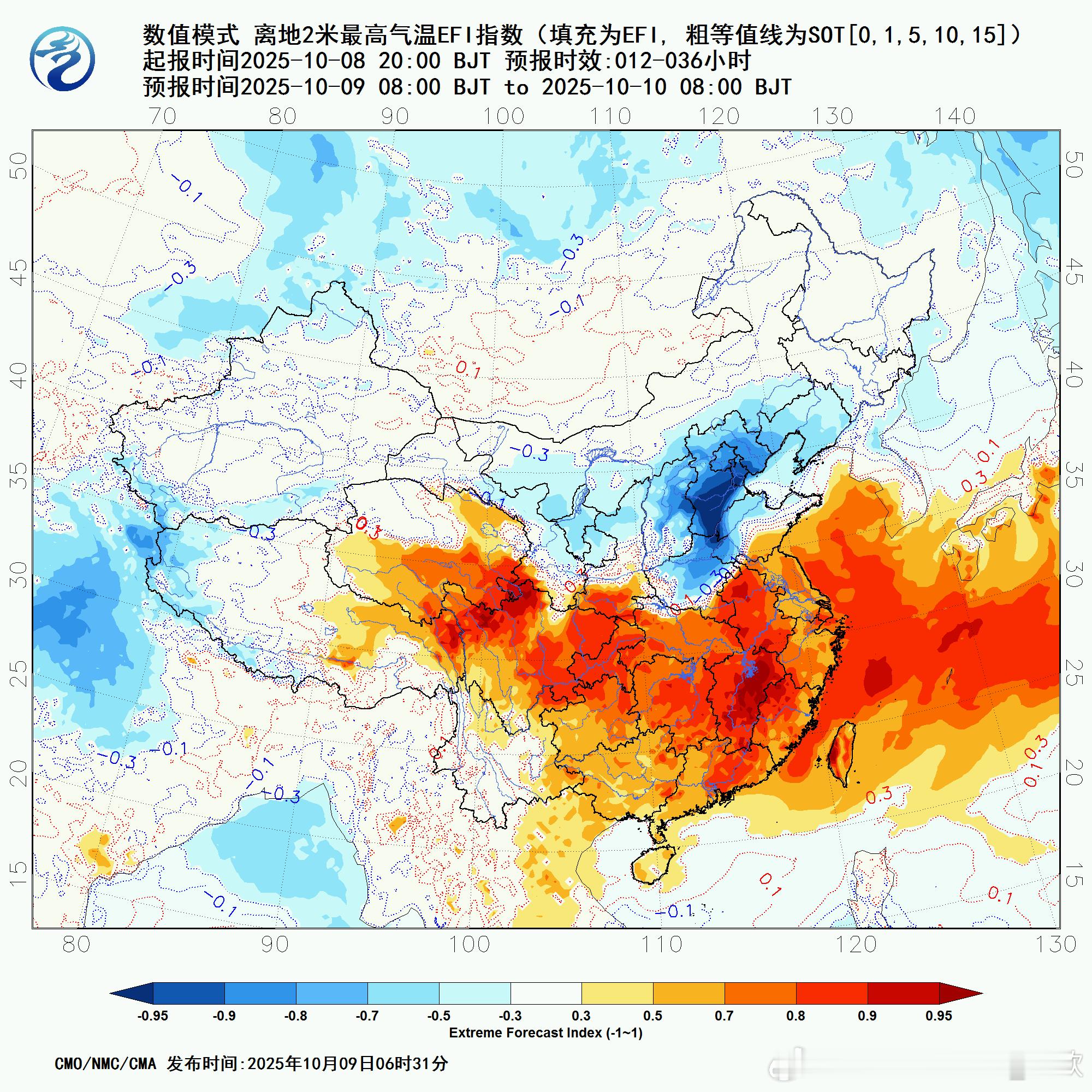 今天东北华北的最高气温会普遍创立秋后新低,京津冀一带偏冷程度同期少见甚至破纪录。比如天津报最高只有10℃可能打破10月上旬最高气温最低纪录,石家庄11℃接近上旬最低纪录。而江西一带,最高气温还有可能破10月最高纪录。而且武汉、长沙、南昌、广州,今天如果出现高温,都会打破最晚高温日纪录。