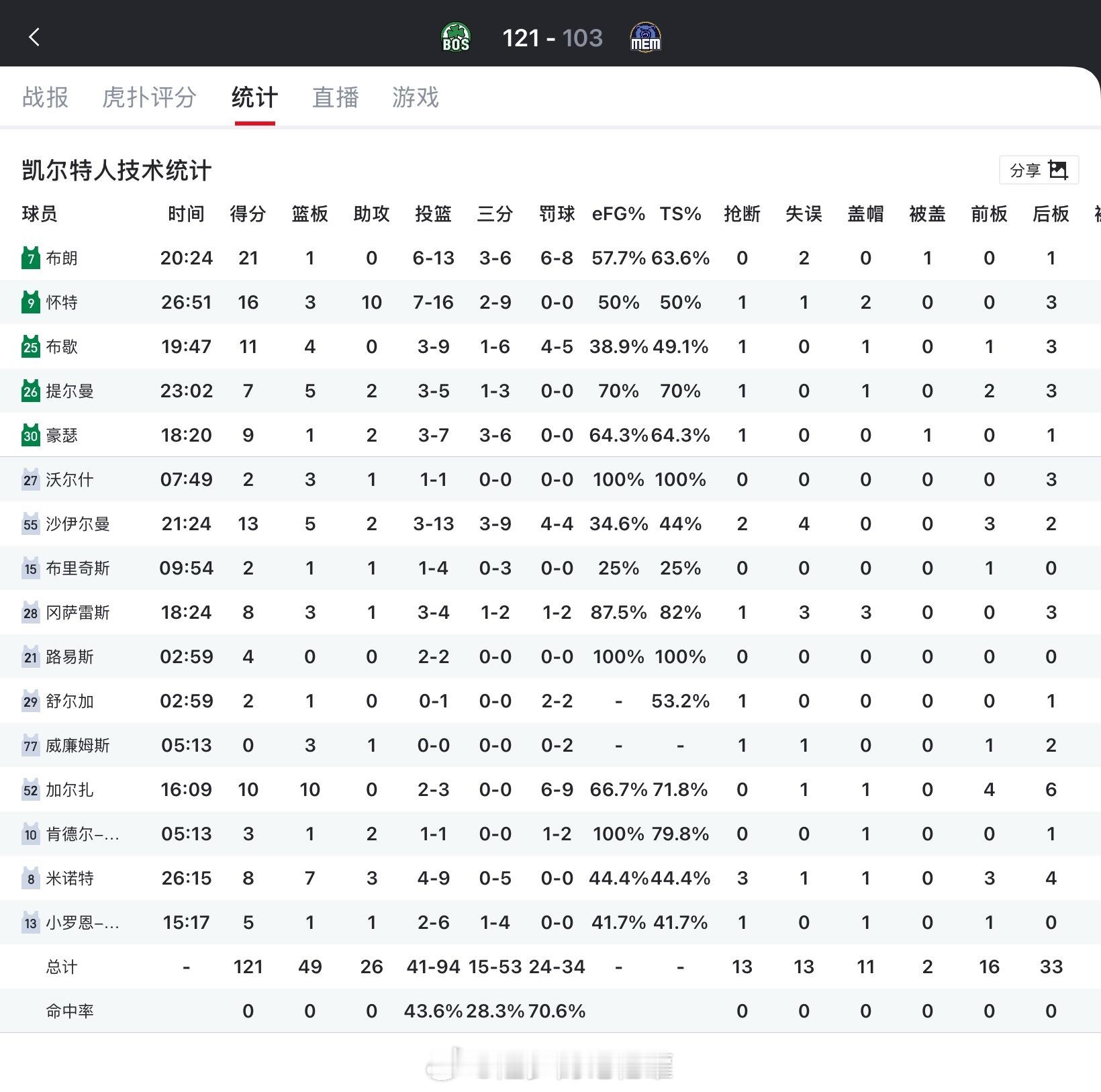 凯尔特人121-103击败灰熊,取得季前赛开门红[加油]