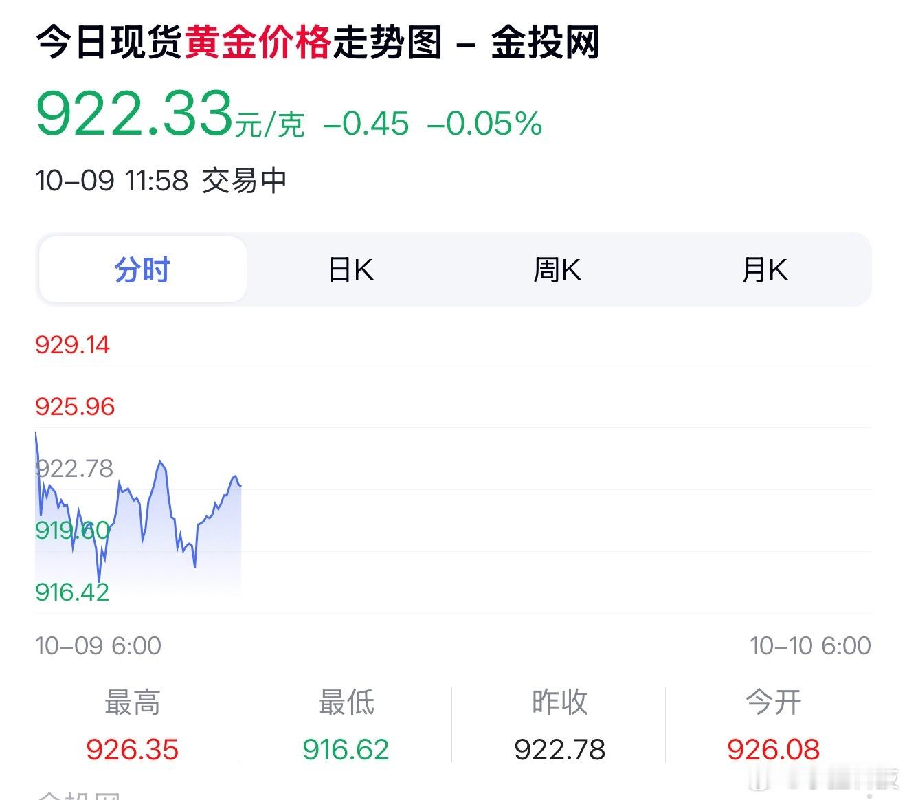 金价真的涨太猛了,国庆看的时候870,现在922了!后悔当初不多买的还是放一放吧