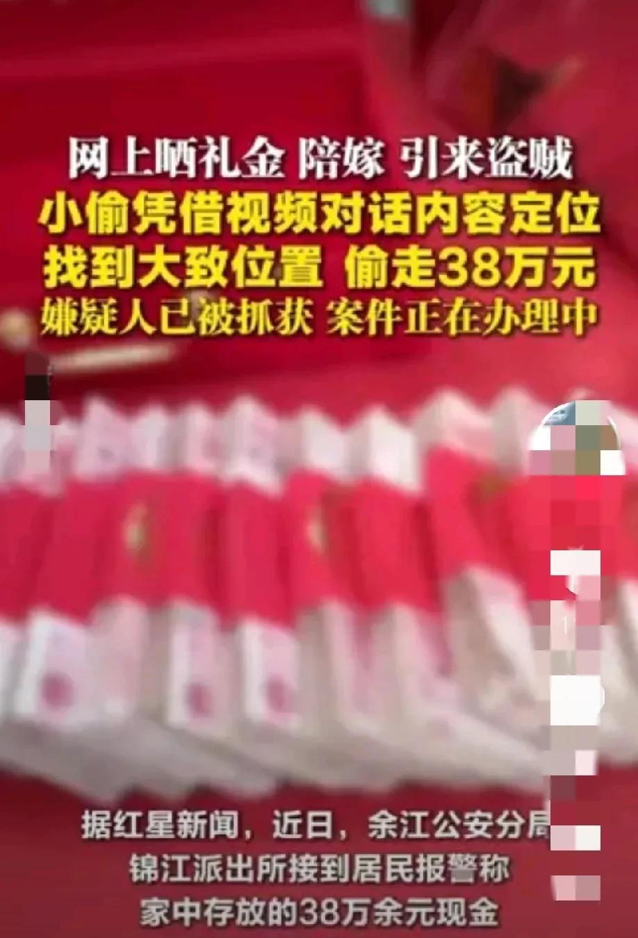 “财不外露!”9月30日,江西鹰潭,一男子给儿子办婚礼,为了炫耀收到了38万礼金,男子将礼金、陪嫁堆在一起拍视频发到了网上,谁知竟被人盯上。 小偷通过地图搜索定位到了男子家地址,之后将38万礼金全部偷走,男子发现丢钱后,把所有的亲戚朋友都怀疑了一遍,就是没想到是自己炫耀遭贼惦记了。 没人知道,这条视频发出时,彭先生心里满是风光。 他是余江区锦江镇铁山村人,在村里做点小生意,平日里为人实在,儿子结婚算是家里头等大事。婚宴办得热闹,宾客随的份子钱一沓沓堆在桌上,加上儿媳的陪嫁和老两口准备的见面礼,凑够了38万余元。 高兴劲儿冲昏了头,他让家人随手拍了视频发出去,镜头里现金堆得显眼,背景里还有人笑着喊了句“铁山彭总”。他没多想,只当是记录喜事,压根没意识到这句称呼会成为祸端。 盯上这笔钱的是彭某,贵溪人,住在鹰潭月湖区,早年间就因盗窃落过案底,后来染上赌博,欠了一屁股债,总想着找捷径“捞钱”。 9月29号晚上,他刷短视频时刚好刷到彭先生家的婚礼视频,镜头里的现金让他眼睛发直。他反复听视频里的声音,“铁山彭总”四个字让他抓住了线索,当即打开地图搜索“锦江镇铁山”,很快锁定了大致区域。 有过两次偷份子钱的经验,他笃定办喜事的人家现金多,且大多会怀疑熟人作案,很少有人真报警,这让他胆子越发大了。 9月30号凌晨,彭某戴上假发乔装一番,开着车摸到了铁山村村委会附近踩点。村里静悄悄的,婚宴后的疲惫还笼罩着家家户户,没人注意到这个陌生身影。 他凭着视频里的房屋轮廓找对了彭先生家,趁夜深人静撬门而入,直接抱走了装现金的箱子,整套动作快得利落,凌晨4点就拎着箱子出现在了村口监控里。回到家他打开箱子,看到满箱现金竟有些慌神,转头就把钱藏进了妻子开的店里,以为这样就能瞒天过海。 清晨的阳光刚照进院子,彭先生就急着去取现金结婚宴尾款,掀开床底的箱子瞬间,腿都软了。箱子空空如也,38万现金不翼而飞。 他瘫坐在地上,脑子里一片空白,嘴里反复念叨“不可能”。这笔钱里既有亲朋好友随的份子,也有儿媳的陪嫁,连老两口准备的见面礼都凑在一块,本是要用来结清婚宴尾款的。 慌乱中,他第一反应是“熟人干的”——知道家里有现金的都是亲戚朋友,外人怎么会摸得这么准?他挨个给亲近的亲友打电话,语气里带着怀疑,话一出口又后悔,好好的喜事闹得满是尴尬。 实在没办法,彭先生才拨通了报警电话,话没说几句就哭了,声音抖得厉害:“所有钱都没了,这可让我们怎么交代啊!”。 锦江派出所和刑侦大队立刻联动,现场勘查没发现明显痕迹,民警转而调取周边监控,那个凌晨4点拎着小行李箱的身影很快浮出水面。顺着身影追踪,嫌疑人的车辆轨迹被完整还原,经过两天分析研判,彭某的藏匿地点被锁定。 10月2号,民警冲进彭某家中时,他还想狡辩,直到警方从他妻子店里搜出整箱现金,他才耷拉下脑袋。“看到箱子里的现金,我就知道这次栽了。” 审讯时,彭某坦白得干脆,他压根没觉得盗窃有错,反倒觉得“来钱快”,还炫耀自己前两次作案都没被抓,就因为失主怕“家丑外扬”不愿报警。可他没算到,这次偷的数额太大,更没算到警方会追得这么紧。 10月4号,彭先生领着家人敲锣打鼓给派出所送锦旗,接过失而复得的现金时,他红了眼眶,一个劲地说“对不起”,既对被怀疑的亲友道歉,也对自己的炫耀行为懊悔。 他删掉了那条视频,逢人就说“真是糊涂,脸面哪有踏实过日子重要”。目前,彭某已被依法采取刑事强制措施,案件还在进一步办理中,等待他的将是法律的严惩。 这事看着是个意外,实则藏着必然。彭先生的炫耀心让隐私成了“明码标价的诱饵”,彭某的赌瘾和前科让他把犯罪当成捷径,而“家丑不外扬”的旧观念更曾助长了这类犯罪的气焰。 在信息流通飞快的当下,随手发的视频可能藏着地址、财产等关键信息,稍有不慎就会被别有用心的人利用。 风光从来不是晒出来的,踏实才是过日子的根本。彭先生用38万的虚惊换来了教训,也给所有人提了醒:守住隐私,才能守住安宁。 各位读者你们怎么看?欢迎在评论区讨论。