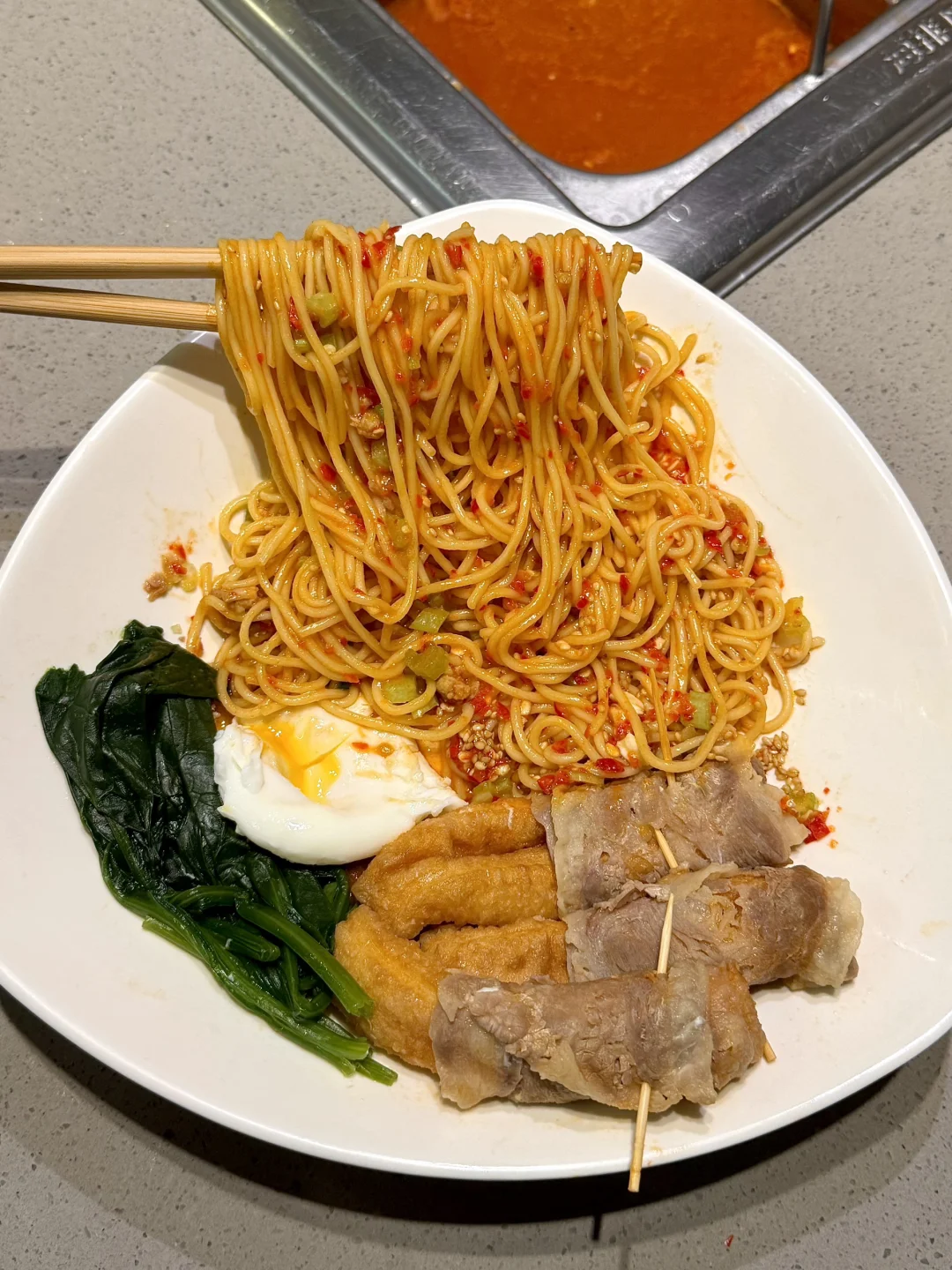 海底捞这个捞面真的嘎嘎好吃!嘎嘎香!😭 做法也是超级简单!有手就会系列~ 做法: 1⃣️点份宝宝面、咸蛋黄油条、鸡蛋🥚、肥牛等爱吃的菜 2⃣️调个料汁: 芝麻➕香菜➕芹菜➕榨菜➕牛肉粒➕小米辣➕醋➕香油 将面条从番茄锅里捞出,搅拌均匀即🉑️真的好吃哭了啊啊啊啊!!! 海底捞海底捞攻略