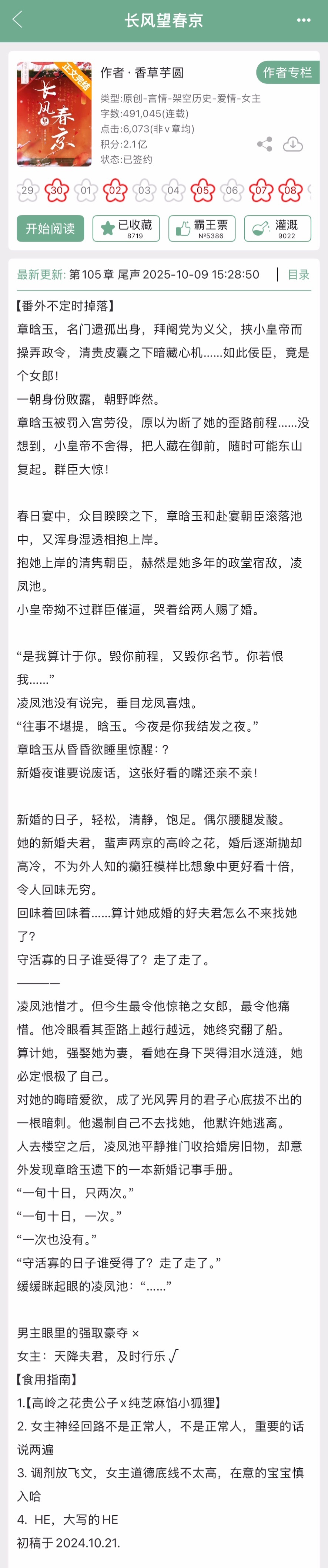 香草芋圆的《长风望春京》完结啦!古言,男主眼里的强取豪夺,女主的天降夫君及时行乐。高岭之花贵公子x纯芝麻馅小狐狸[开学季]