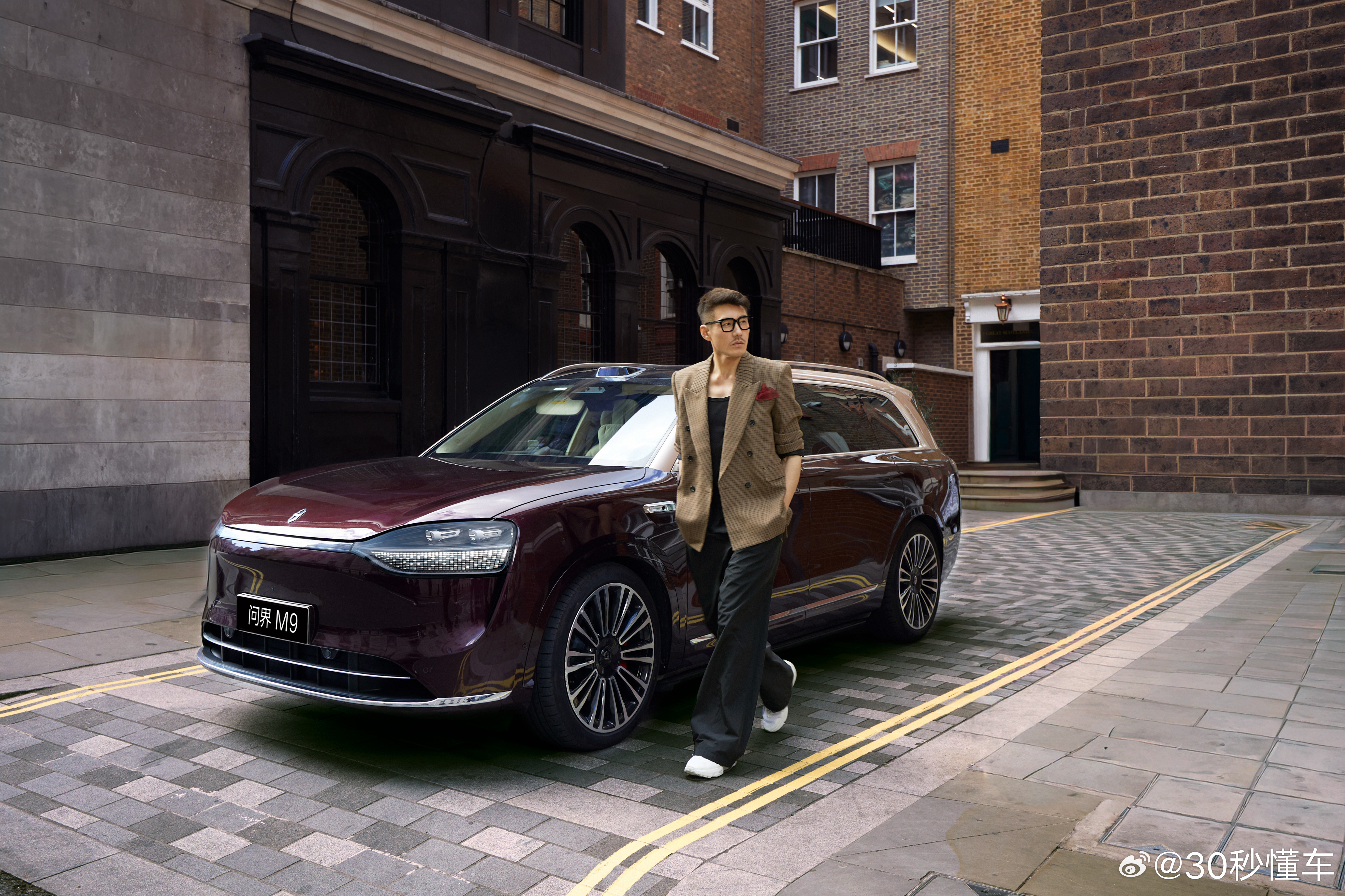 当英伦风情遇上科技美学,街巷之间尽现出行优雅。伦敦时装周国际大使胡兵与问界M9