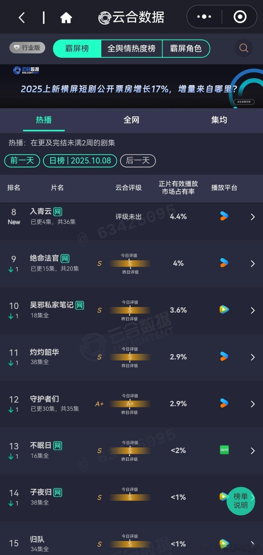 入青云首播四集云合4.4%,预估播放量900万,算还可以的开局。