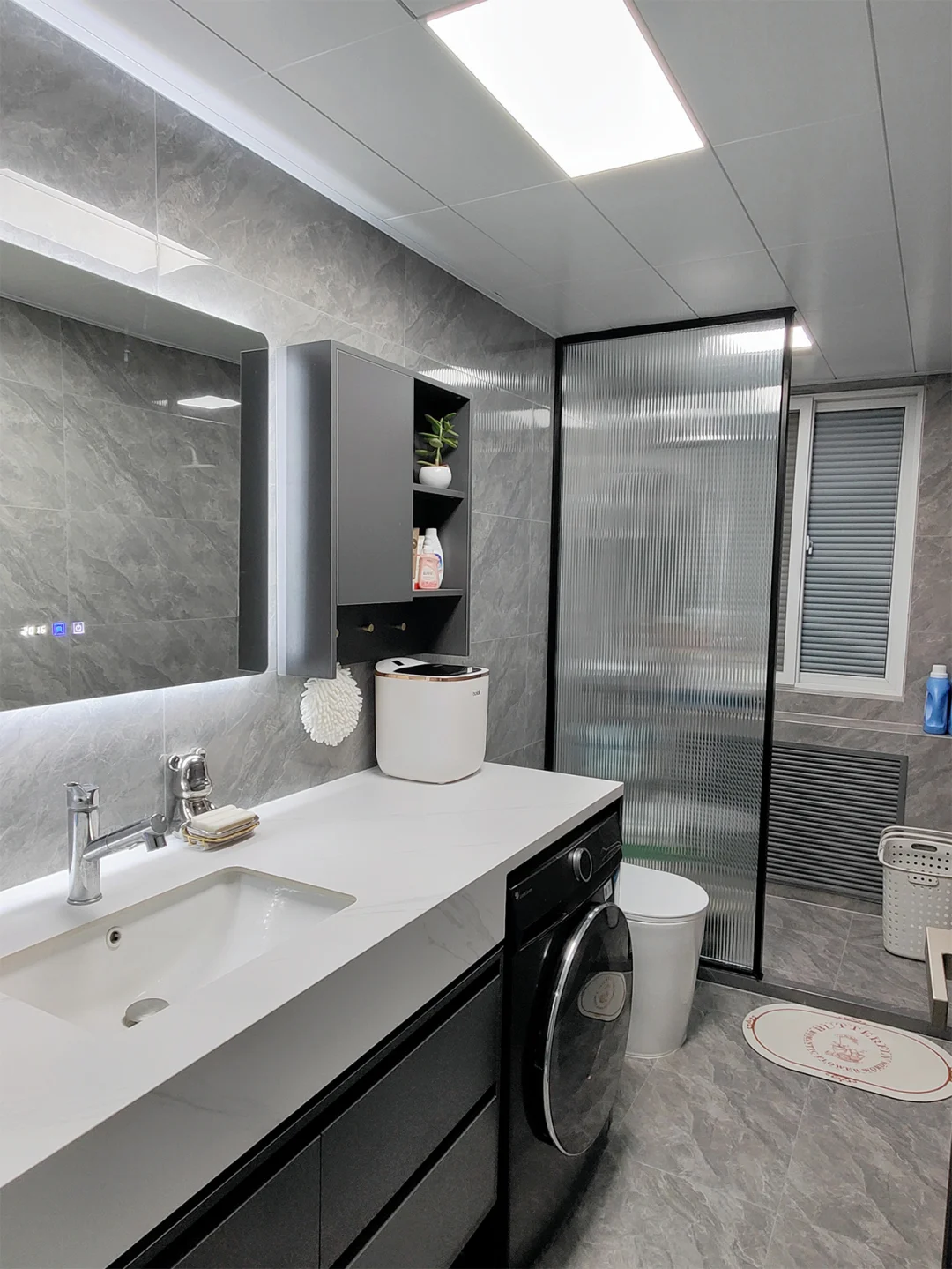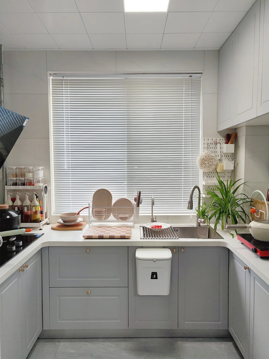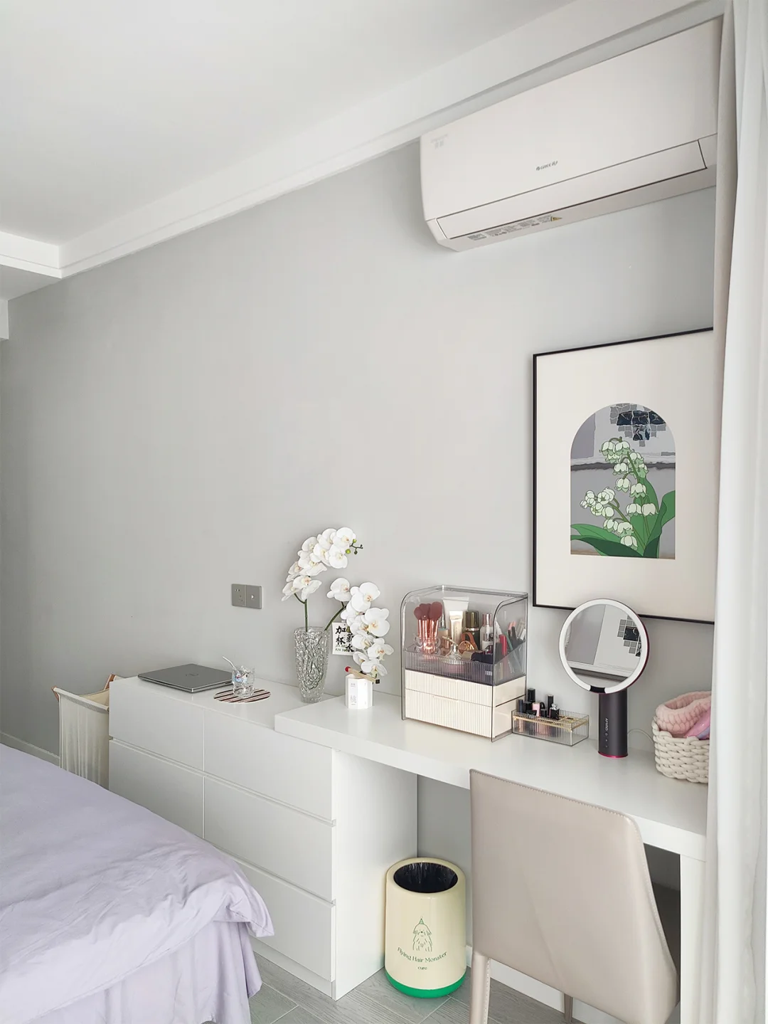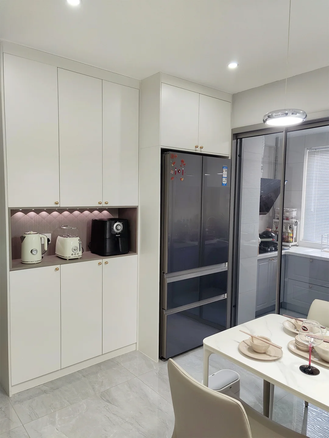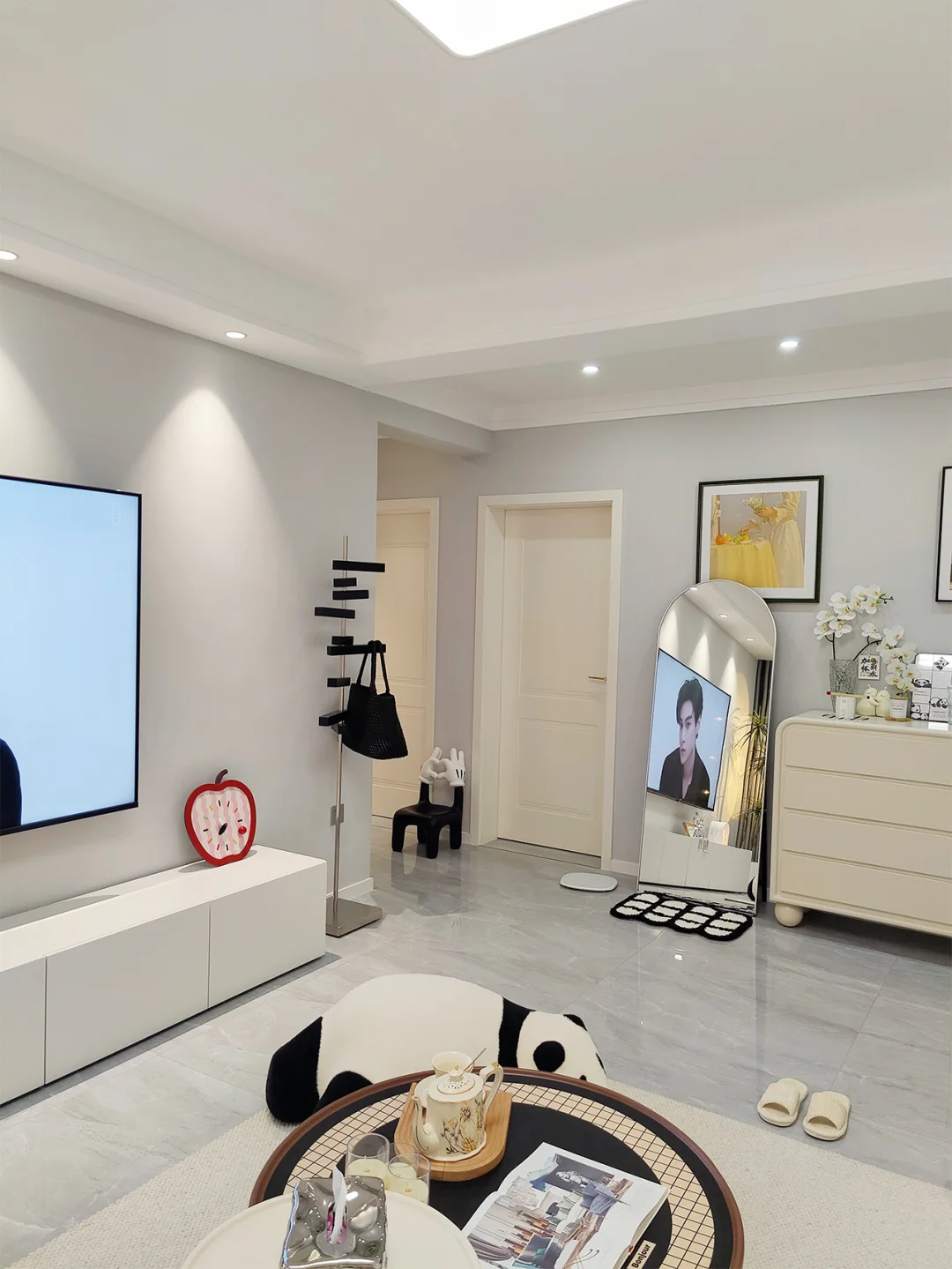 推门而入,喧嚣便被隔绝在外。整个空间以柔和的米白与浅灰为基底,没有繁复的装饰,却处处透着精心。 低矮的布艺沙发线条利落,搭配一个素色地毯,便构成了客厅的核心,简单却足够舒适。 墙面保持了最纯粹的质感,偶尔挂一两幅线条简约的装饰画,或是摆放一盆舒展的绿植,就足以点亮整个空间。餐厅与厨房相连,开放式的设计让视野更开阔,浅色调的橱柜与极简岩板餐桌相得益彰,营造出干净清爽的氛围。 每一处细节都在做减法,去掉多余的色彩和造型,留下的是最本真的质感与实用。在这里,生活回归简单,心情也随之沉静下来。