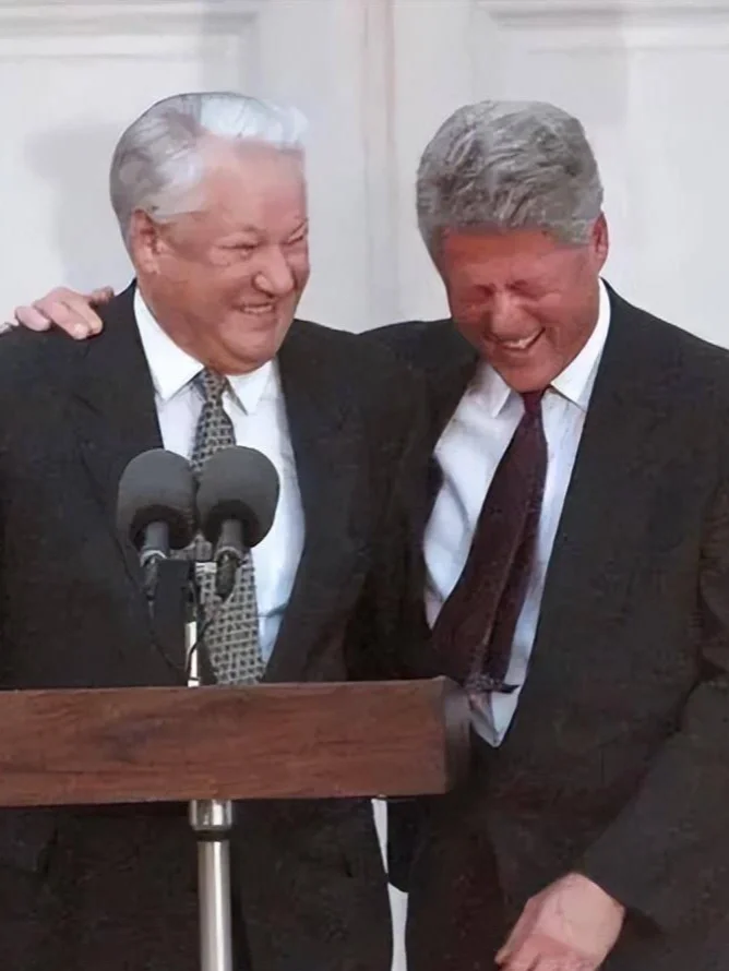 有评论说:能在两国领导人公开会面时如此不顾形象地大笑,也正体现了克林顿瞧不起叶利钦这个被西方忽悠瘸了的憨憨。克林顿的笑,更像是对叶利钦的无情嘲笑,他在当上俄罗斯总统后第一时间来找美国求和,甚至提出俄罗斯加入北约的天真想法。本想“相逢一笑泯恩仇”,他都把苏联搞解体了,美国想必会容纳俄罗斯加入西方大家庭,可是很显然他想的很天真。