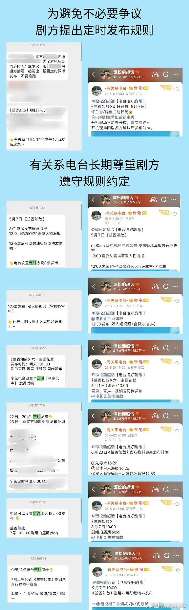 谭松韵粉丝维权中,要求《兰香如故》配角粉丝对接也要按照番位顺序发对接信息……