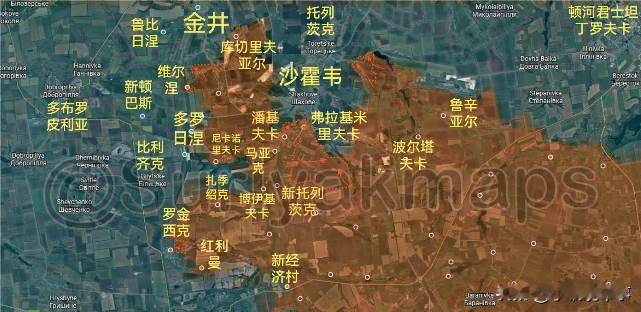 10月8日俄乌最新战报: 1.哈尔科夫州前线: ①在占领奥德拉德涅村后,俄军开始向奥斯基尔河推进,并控制了靠近乌俄边界的一些阵地(图一)。 ②俄军在克拉斯涅·佩尔舍村以北取得了一些进展(图一)。 2.恰索夫亚尔和顿河君士坦丁罗夫卡方向前线: ①过去两周里,俄军控制了斯图波奇基村东南部的突出部(图二)。 ②过去一周里,俄军重新夺回了普列德特涅村的一些阵地(图二)。 ③俄军通过自八月以来的阵地战,夺取了恰索夫亚尔市北部通往迈斯克村方向的一些阵地(图二)。 3.沙霍韦前线: ①俄军占领了沿卡泽尼托列茨河的乌军防线和新托列茨克村北部地区,并完全控制了弗拉基米里夫卡村及其东南部的一些阵地(图三)。 ②俄军在索菲伊夫卡村以东、以及维尔涅村周边地区推进(图三)。 ③俄军重新进入了罗金西克市(图三)。 4.红军村(波克罗夫斯克)和乌达奇涅前线:①过去两周里,乌军完全收复了新尼古拉耶夫卡村(其西南部的仓库除外,图四)。 ②俄军占领了乌达奇涅以北的新阵地,并进入了克拉斯诺阿尔梅伊斯卡亚-扎帕德纳亚1号矿区(图四1)。 5.第聂伯罗彼得罗夫斯克州前线: 经过五周多的战斗,俄军占领了菲利亚村(图五)。 6.第聂伯罗彼得罗夫斯克州—扎波罗热州前线: ①俄军完全控制了新格里戈里夫卡村及其以北的一些阵地(图六)。 ②俄军占领了波尔塔夫卡村附近扬楚尔河东岸的新阵地(图六)。 俄罗斯军事战报 俄罗斯前线战报 顿涅茨克局势 顿涅茨克战场 顿涅斯克战况 顿涅茨克争夺战