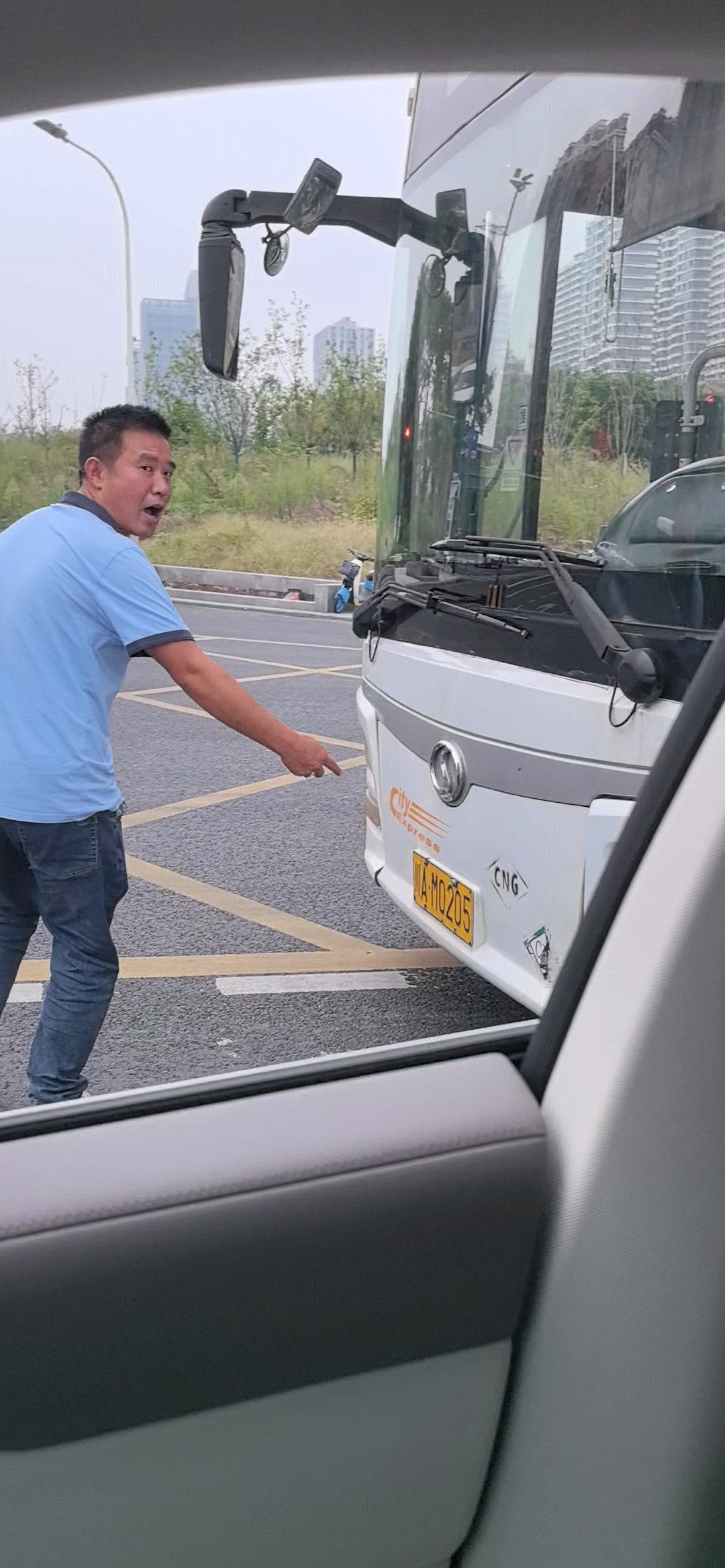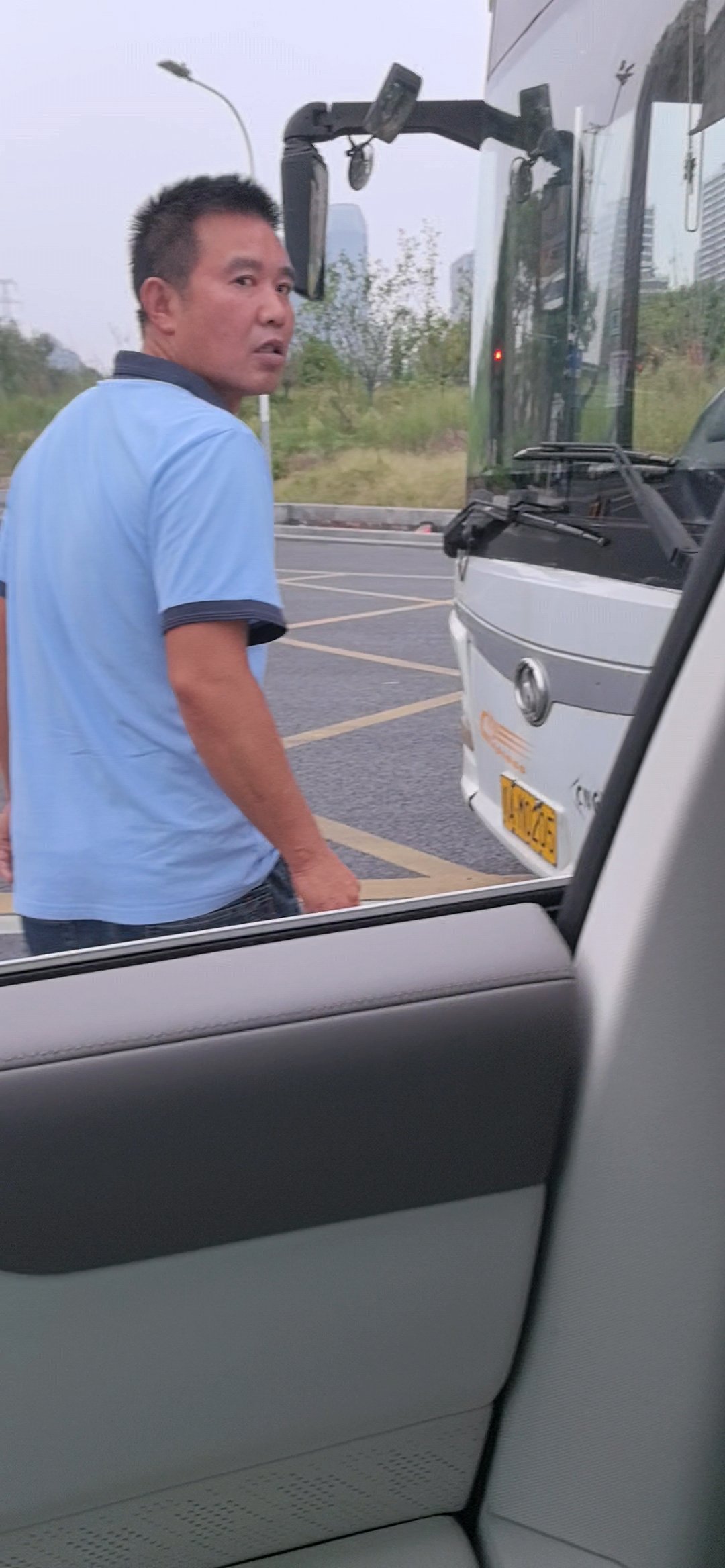 事情是这样的,昨天开车正常行驶等左转红灯,这公交车司机从直行道跨实线想加塞进来,我没让,因为他跨的是直行道实线,完全无视交通规则。然后他就红温了,隔着窗户听到公交司机说了一句:再不让,我绝对撞你。我还是没让,在等左转红灯的时候,司机把一车乘客撂路中间,直接从车上下来质问我,???