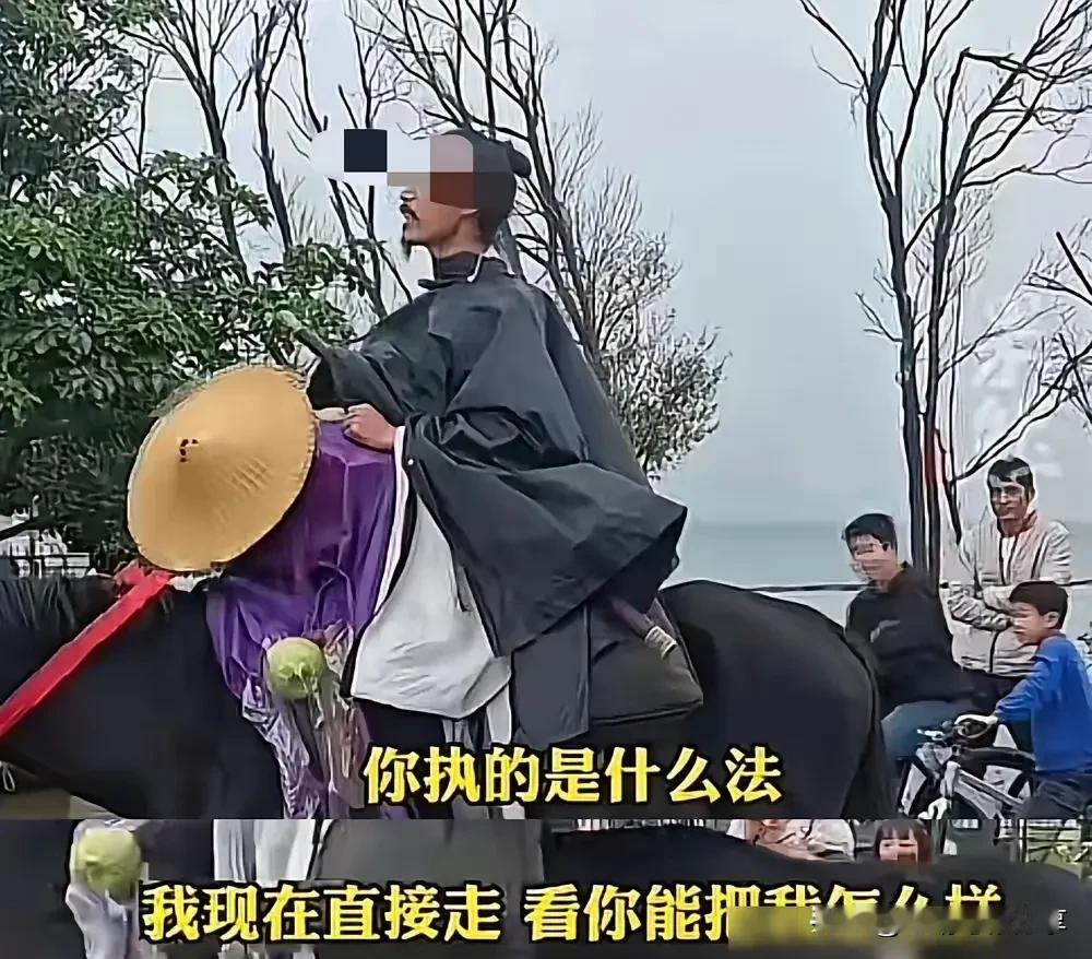 这下好了, 出名了, 不止洱海知道了,全国都知道了,这位叫“洱海堂吉诃德”的网红张某竟然妄想骑马进景区,被赶出来了吧! 10月7日,网红张某身着古装、头戴斗笠,自称“大侠”,骑马来到云南大理洱海生态廊道入口处,试图进入廊道。保安上前阻拦,但张某声不顾劝阻骑马硬闯过去。保安持盾牌阻挡无效后,一名保安用棍子击打马头,张某则高呼“他打我的马了”。现场一度混乱,有路人起哄,但事件最终以张某离开告终,未升级为肢体冲突。 洱海生态廊道作为开放式景区,长期禁止机动车、电动车辆及马匹等进入,目的是为了保护环境和游客安全,避免动物粪便污染廊道环境和水体,同时防止马匹受惊引发冲撞、踩踏游客等意外。 本来就是人流量大,众多游客打卡的圣地,你骑着马过来,万一马受到惊吓伤人了怎么办,算谁的责任? 保安的劝阻没有任何问题,倒是这位网红张某,如果发生了什么意外,可是要负法律责任的! 网红的初衷,应该是宣传正能量的群体,而不是招黑,传播负能量! 这位网红张某,以为网红会有特权,可是社会规则和法律可不会惯着你,身在中国的领土,就应该遵守中国的律法! 你骑马的样子很帅,但是你硬闯景区的样子真丑! 大家觉得呢?
