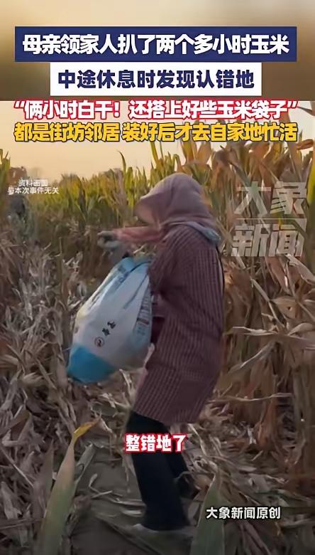 10月7日,黑龙江齐齐哈尔,一女子领着家人去地里扒玉米,干了2个小时后坐在一旁休息,家人这才发现不对,扒的是邻居家的地!于是急忙给邻居打电话,装好袋后才又去自家地里忙活。网友:懒人有懒人的福! 信息来源:大象新闻 网友评论: 这种情况在农村根本不可能发生,就是一个人去地里,即使晚上摸黑去都不会走错,因为土地是你的粮仓,库房,不大一块地有多宽都心知肚明!除非很少很少去,几年十几年才去一次! 邻居帮忙你摘不就得了。不知道,自己家的地是很正常的。我们以前那里一片地,你要不仔细确认的话,还真不知道是谁家的,很大的一片地,都是一家分的一点,你要仔细确认。以前我们到地里干活,爸妈都会叮嘱我们不要干活地认错了 哈哈,今年和老公回他的老家祭祖,老人的坟埋的比较分散,需要一个个的祭,结果最后一个把东西摆好后,大哥发着呆一言不发,我问,咋了,他说好像坟搞错了,应该是边上的[捂脸]