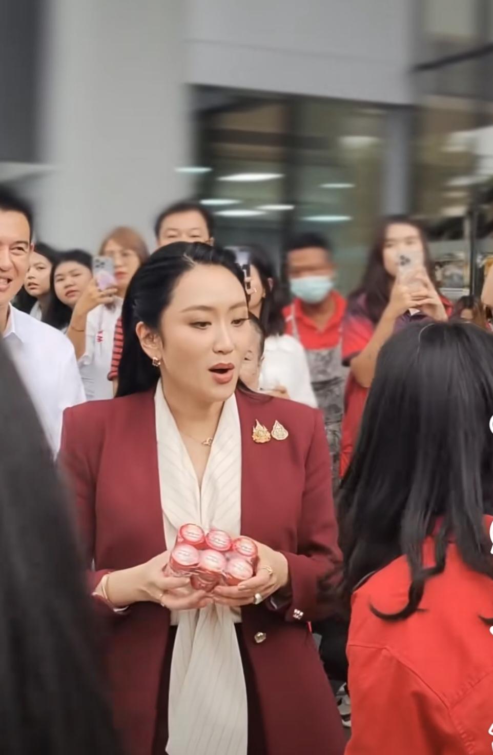 佩通坦虽然不是泰国总理了,大家依然喜爱她!筹备选举动员工作演讲完毕,走出为泰党办公大楼,她立马被市民包围了。有位红衣女子提着一捆鼻通,大大方方地递给佩通坦几瓶。佩通坦欣然接过来,迫不及待地闻一下,笑容满面地向赠送者致谢。 事虽小,但能说明佩通坦与大家关系好。民众关心她的身体,她为民众服务,她还是那个和民众打成一的总理。鼻通作用主要是缓解感冒的鼻塞,头痛等症状。日常小事的关心,说明大家希望美女佩通坦健健康康的,努力工作!佩通坦不会辜负大家的期望,一定会有所作为的!