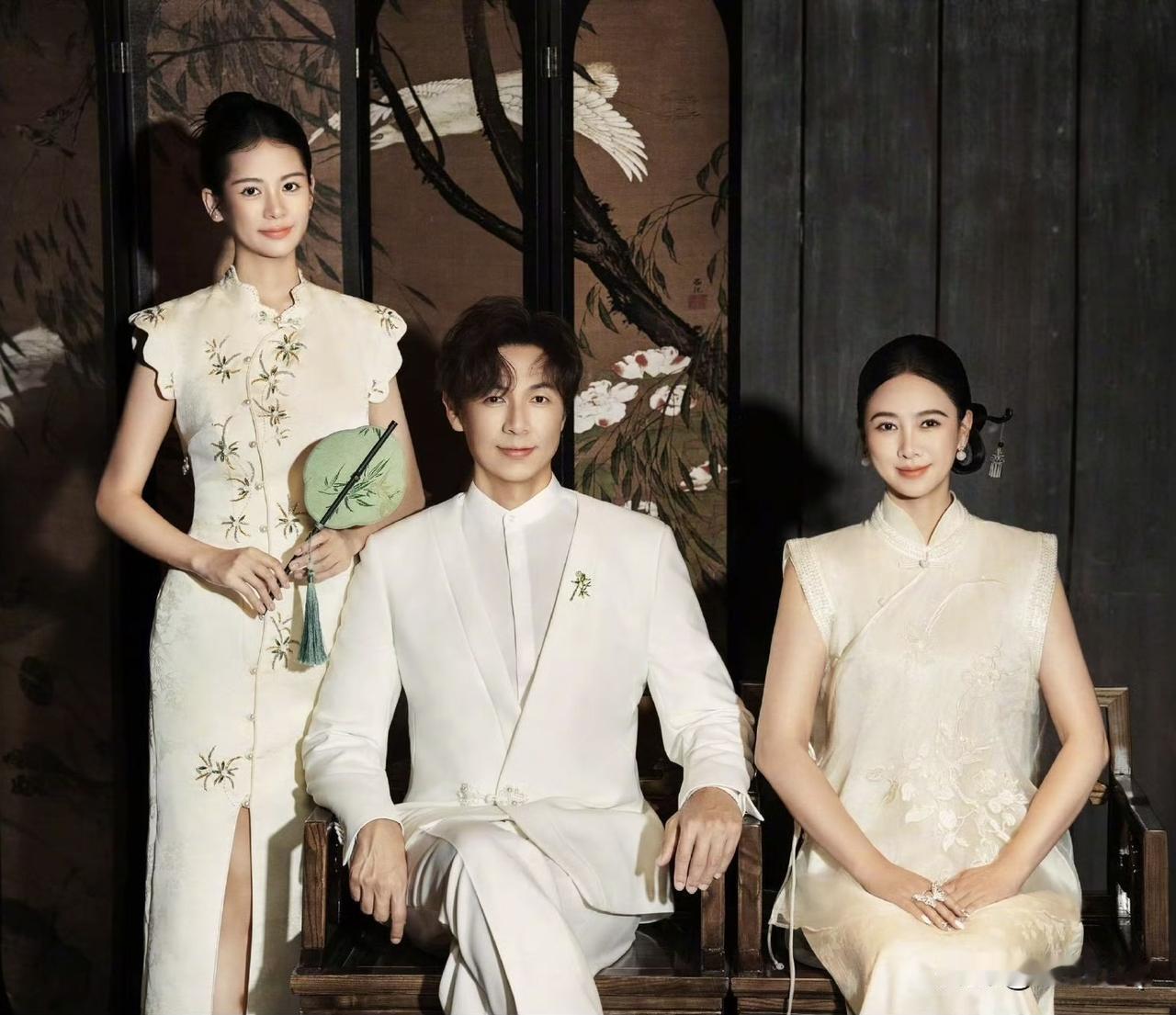 翁虹带着老公女儿拍复古写真,翁虹真的很适合穿这种素色新中式,淡雅清新、温婉动人,