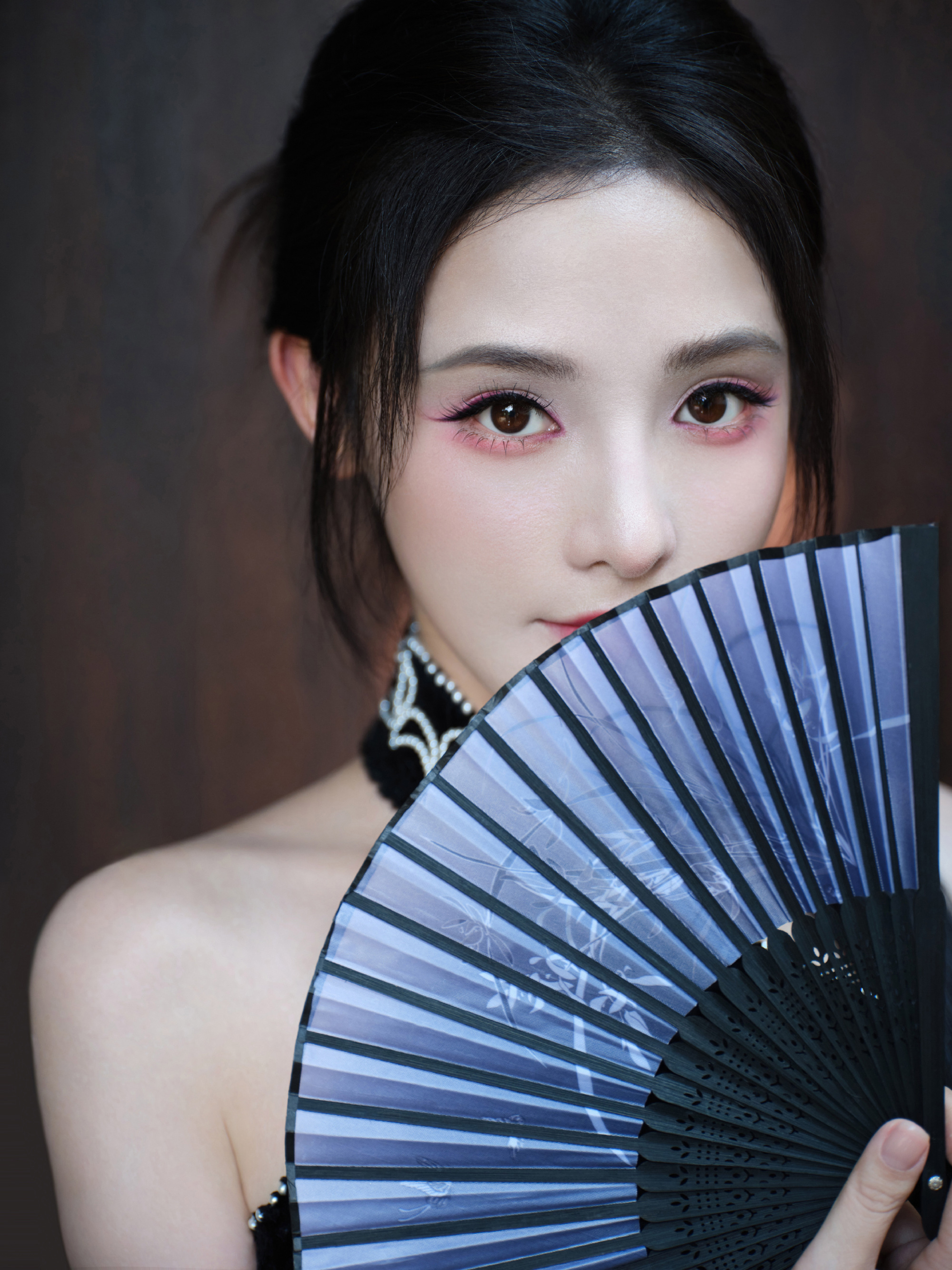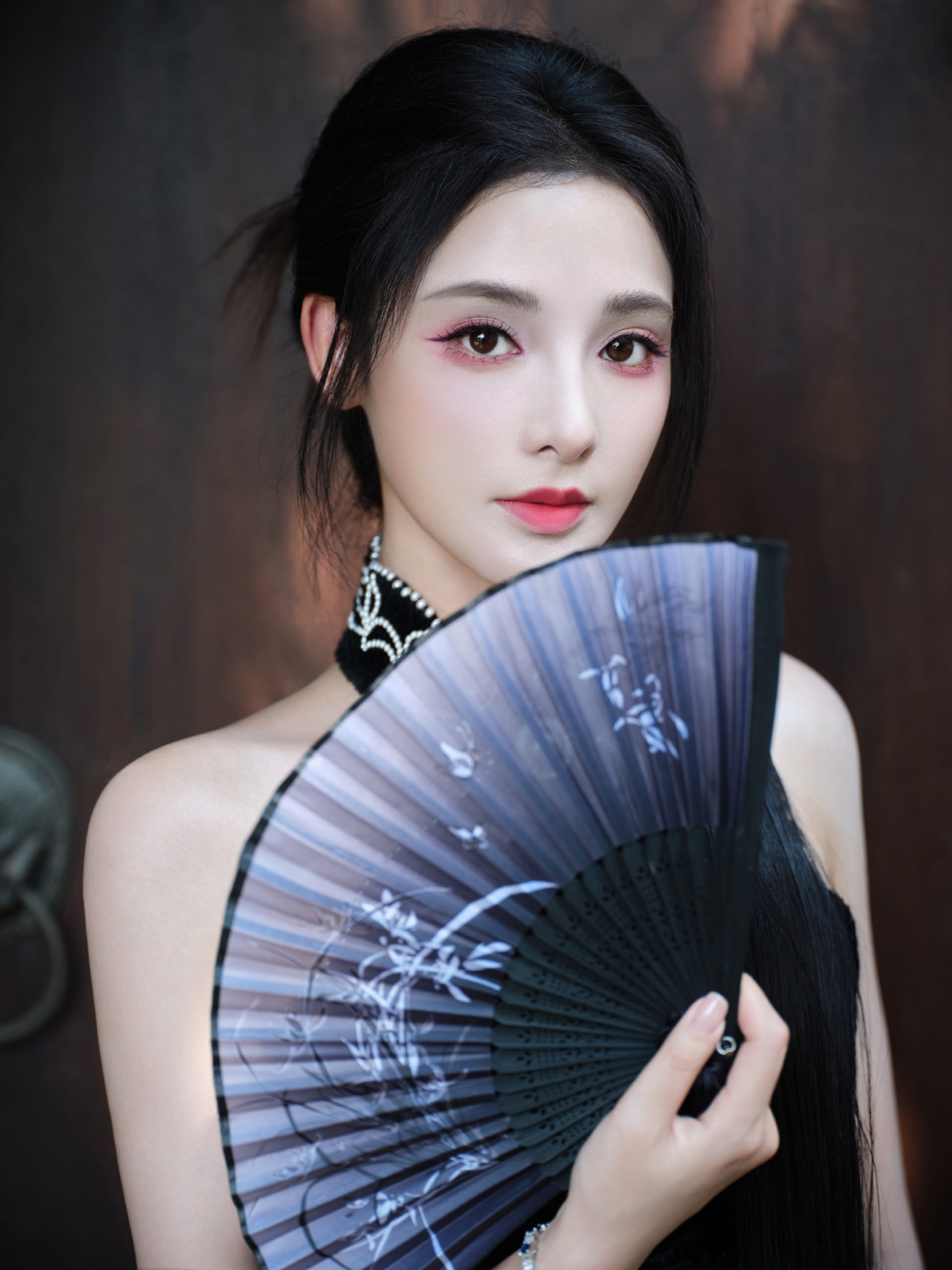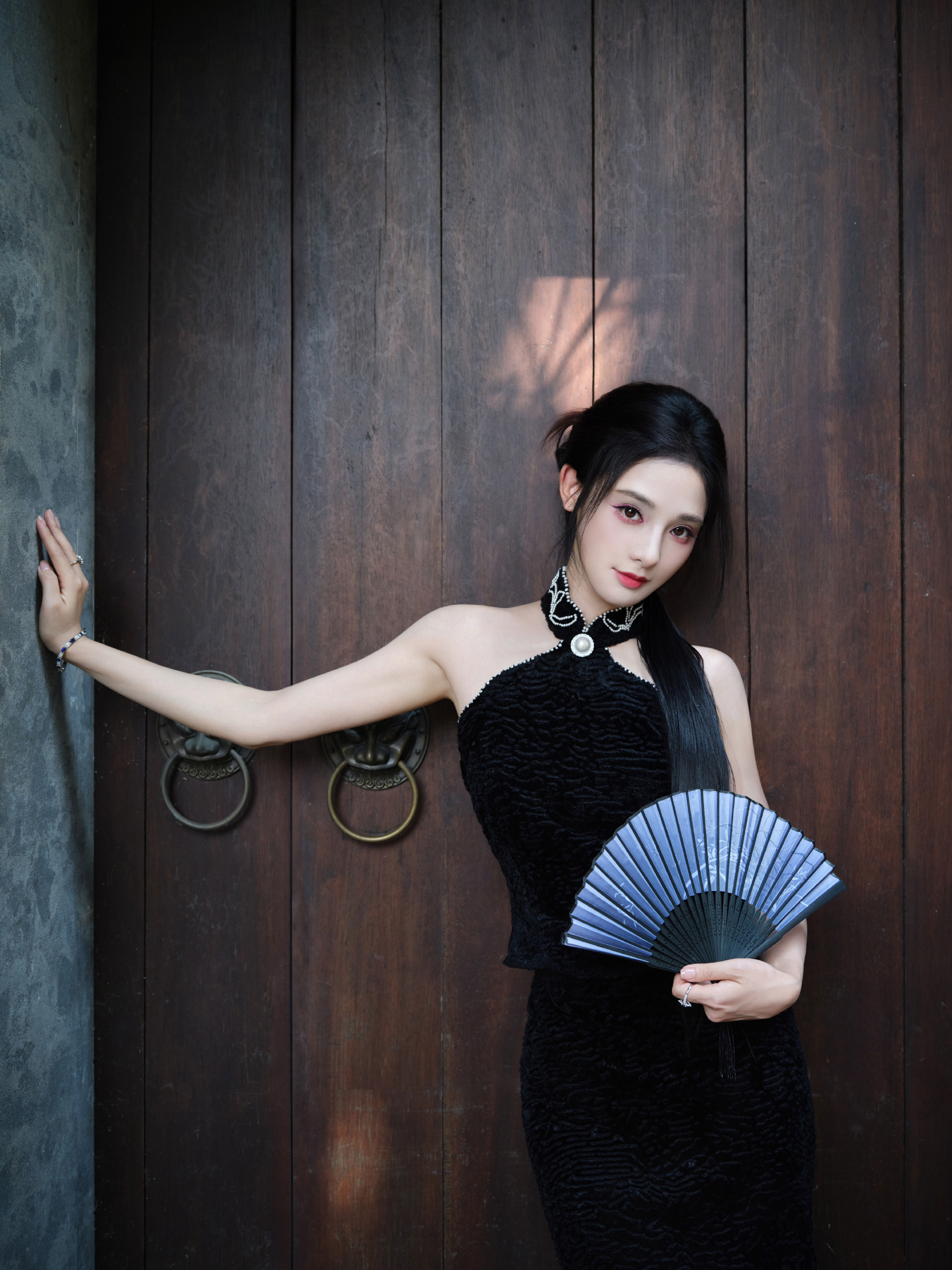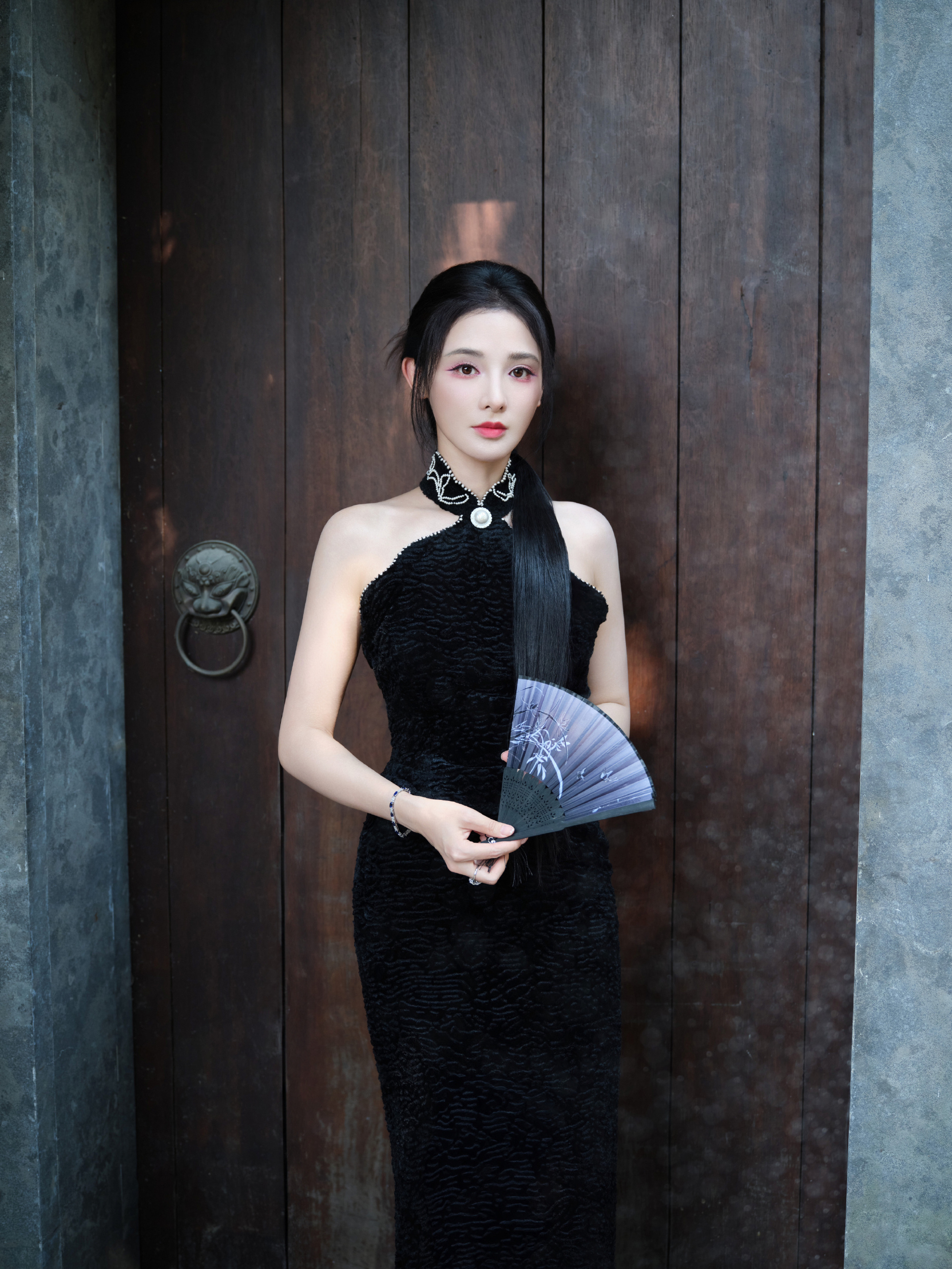 彭小苒秋日大片,明艳黑色长裙,满园绿意秋波扇动,湖光潋滟,悦目佳人