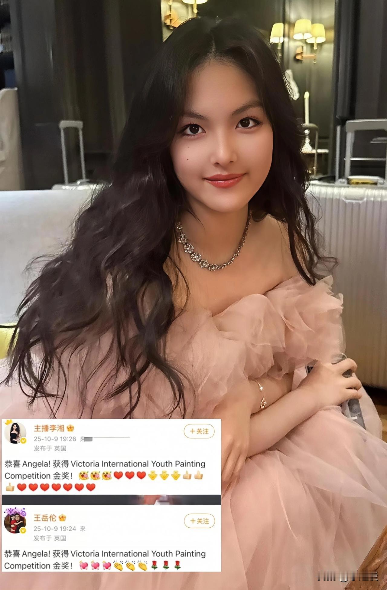 李湘现在开心的想高歌一曲,女儿王诗龄才15岁就为她争光了。 10月9日,王岳伦发文祝贺,他的女儿王诗龄,在英国获得了青少年绘画大赛金奖。 这场比赛,有无数全国各地的青少年参赛,都是画画届的佼佼者,王诗龄能够获得如此殊荣,真的是太不容易了。 王岳伦曾经就说过,他的女儿坐得住,很适合画画。当然了,王诗龄之所以能够取得如此的成就,除了她自己的努力以外,还有一个很重要的原因,那就是来自于家庭的支持。 王岳伦和李湘多年悉心栽培,给她找名师指导,王诗龄不负众望,获得了金奖。 不得不说,王岳伦和李湘虽然离婚了,但是对待两个人的共同女儿是真的很爱。 有网友透露说,多年前他有幸见过王诗龄一面,给他的印象很深刻,王诗龄是个非常有礼貌的孩子,家教非常好。 在王诗龄去英国之前,网友的女儿和她一起打过高尔夫。有个很重要的细节,每次王诗龄爸爸妈妈都一起陪着。 网友表示,按照时间线来说,那个时候王岳伦和李湘虽然没离婚也快离婚了。但是夫妻二人非常爱这个孩子。 在父母爱的教育下,王诗龄成长的很好很优秀,相信未来她的前途一片光明。