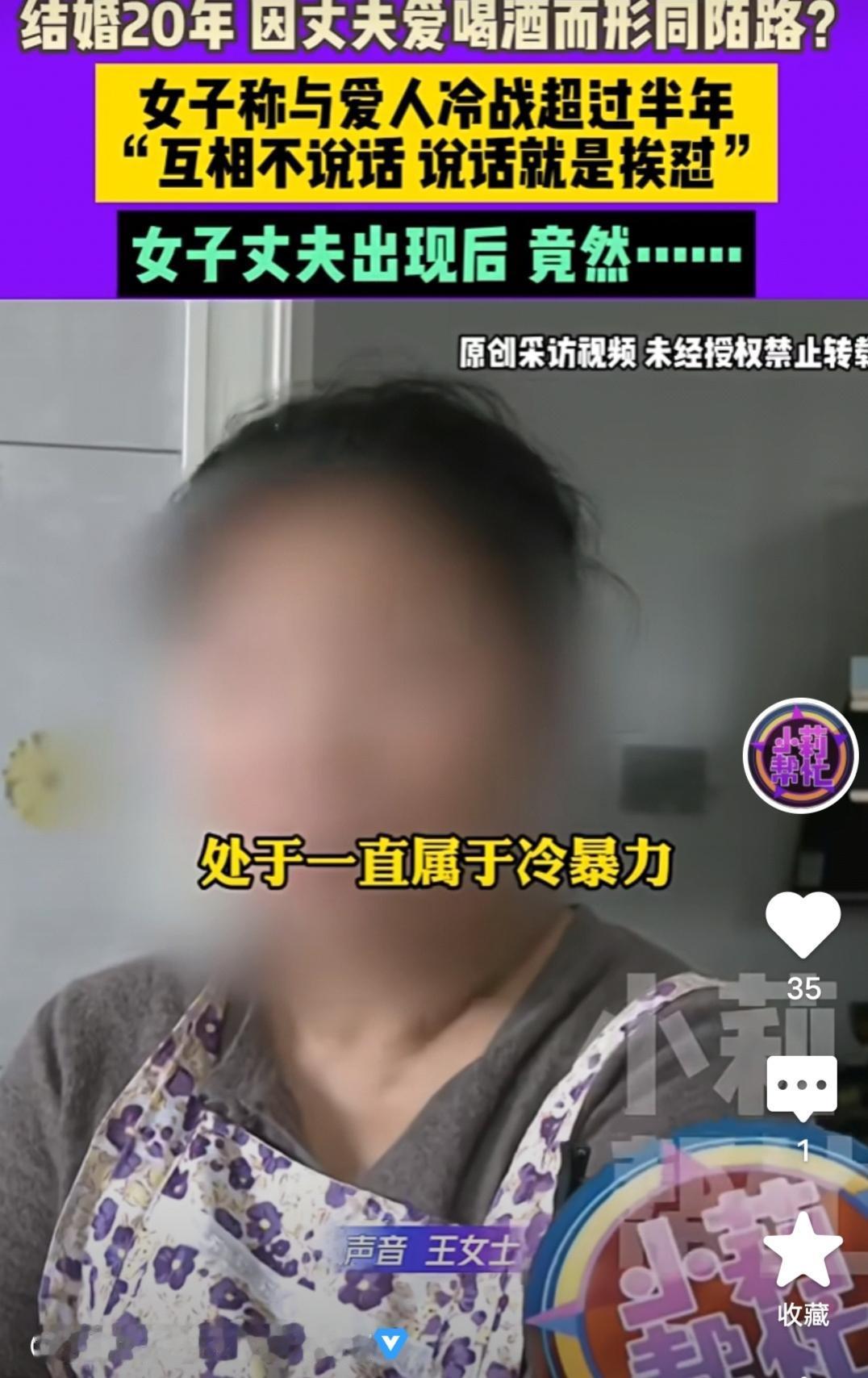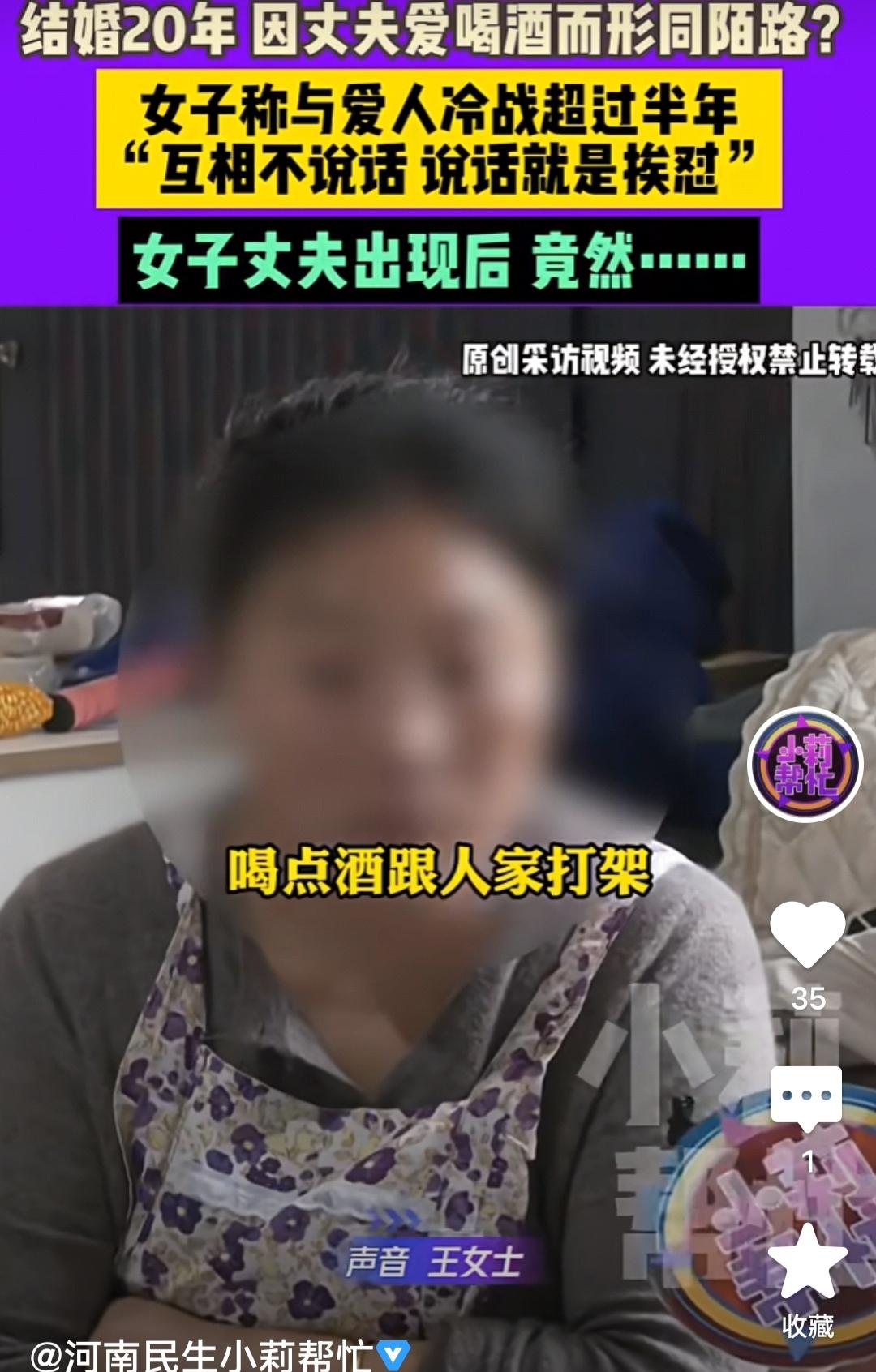 河南新乡结婚20年因丈夫爱喝酒而形同陌路?女子称与爱人冷战超过半年“互相不说话说话就是挨怼”女子丈夫出现后竟然…… 今天又刷到小莉帮忙了,又是那些让人费解的家长里短的事,但也是最多见的社会事,镜头前,河南新乡王女士哭诉说,实在受不了了,丈夫每天中午喝晚上喝,喝了就跟人打架,回家踹门等,王女士为了四个孩子,外出打工挣钱,回家后丈夫就不跟他说话了,已经接近七八个月不说话了,王女士找来小莉帮忙,王女士丈夫出现后,就暴躁地问王女士要干啥,就说了这两句,工作人员追着跟他沟通两句,问他有什么委屈说出来帮他们解决,他也不说话,直接开车走了,他父亲也都说,真想给他扔一棍子。 说真的,有什么话不能好好说出来呢?都结婚二十多年了,都是四个孩子的父母了,有什么不能好好沟通的?就算厌了倦了,好说好散,这样对人家什么意思?就想这样耗着人家?让人家给你家当老妈子,照顾好孩子和老人,然后方便自己在外花天酒地?太可恨了吧,什么玩意儿? 如果另有什么原因,就像小莉工作人员说的,就算有什么委屈,你好歹说出来,遇着问题不解决,这样逃避下去,只会让矛盾越来越深,都是到了快要过退休生活的年龄,过了这大半辈子了,再加上有人来帮忙协调了,那就敞开心扉把自己的想法和诉求说出来,有第三方专业帮忙协调的情况下,你们之间的问题就很大概率是可以解决的,关键是自己要勇于去面对去解决,人生短暂,不要将时间都用来消耗彼此。