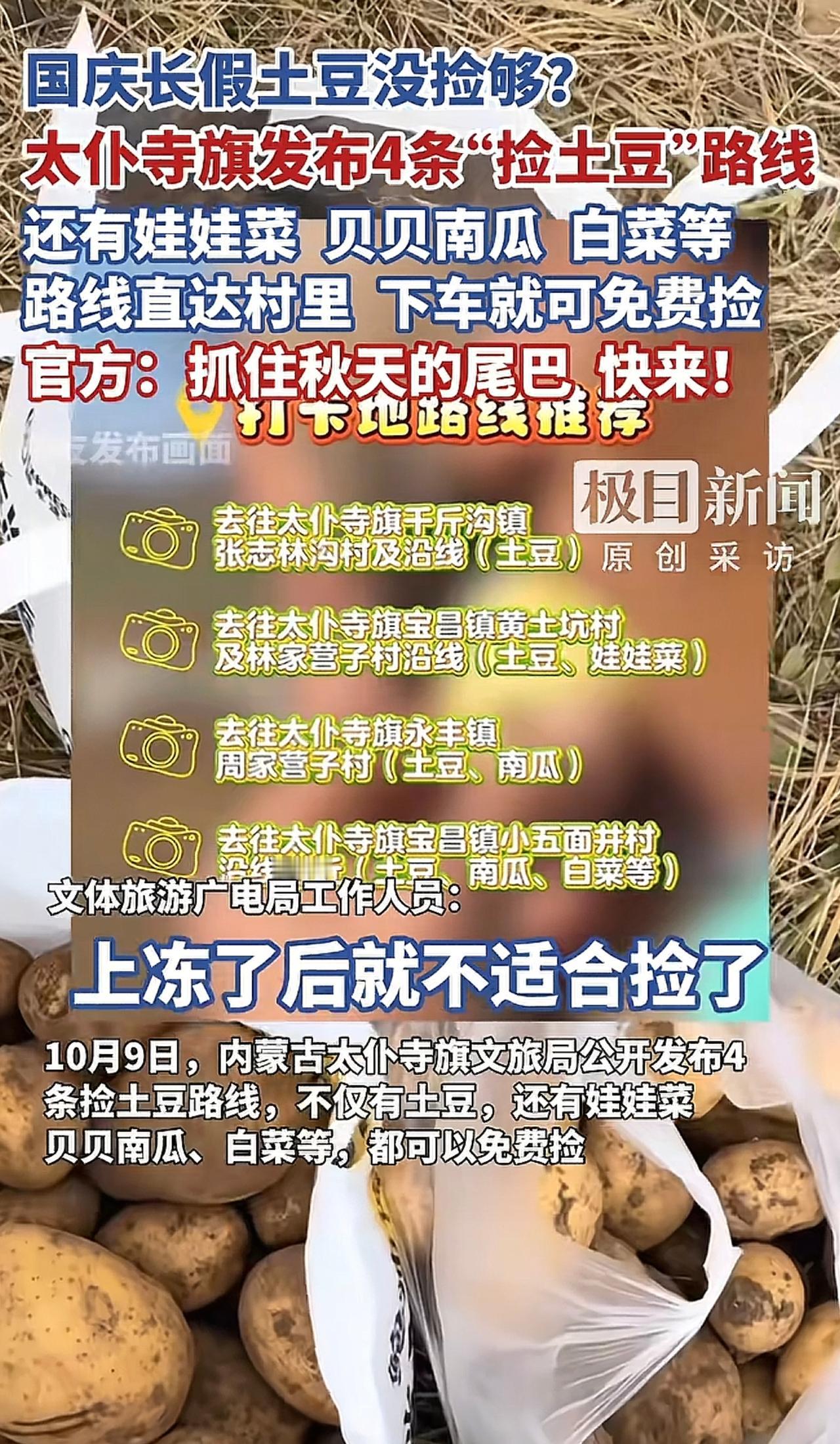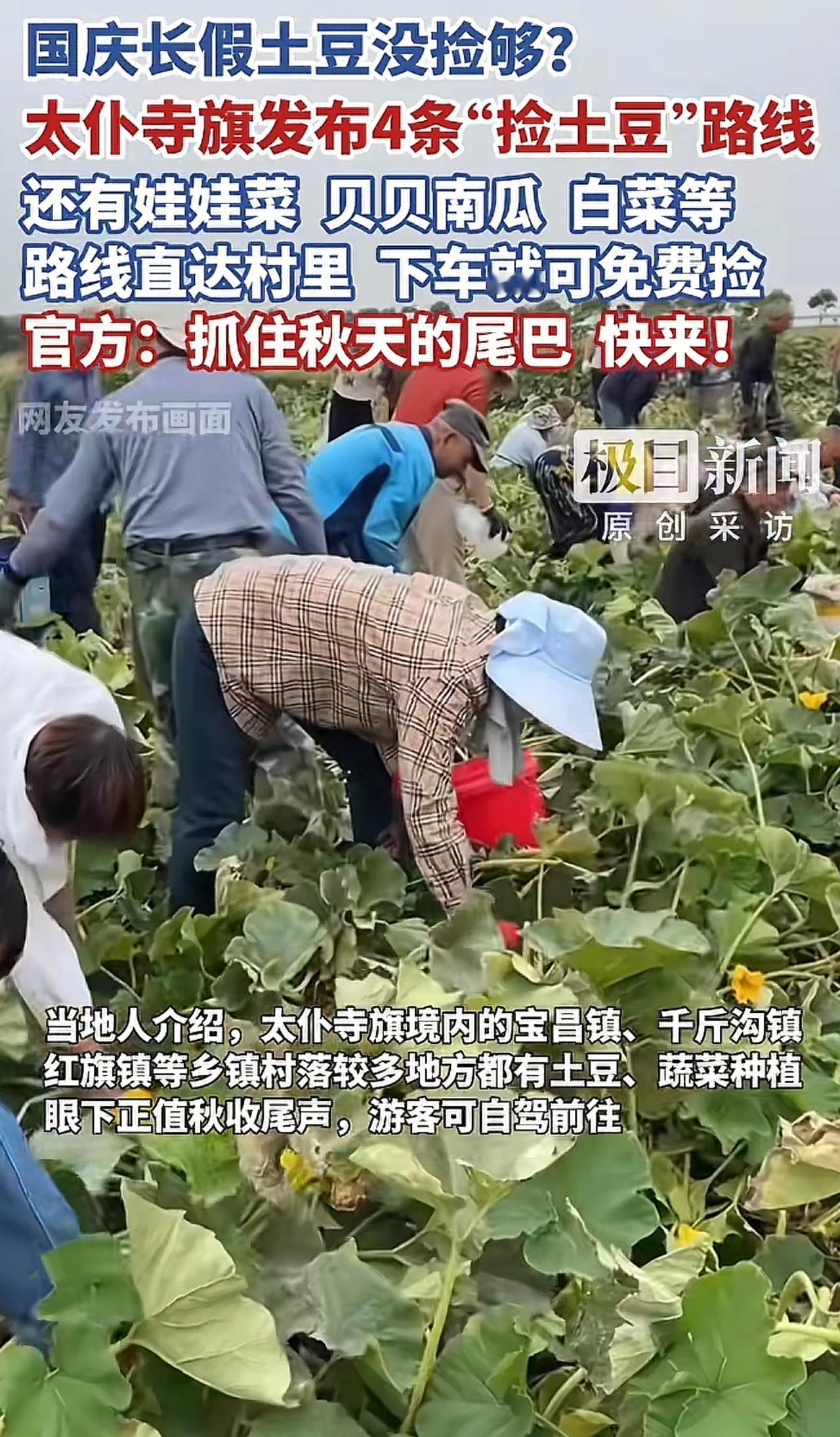 内蒙文旅万万没想到,免费捡土豆竟然爆火,同时引出了捡南瓜、白菜等新花样。其实之所