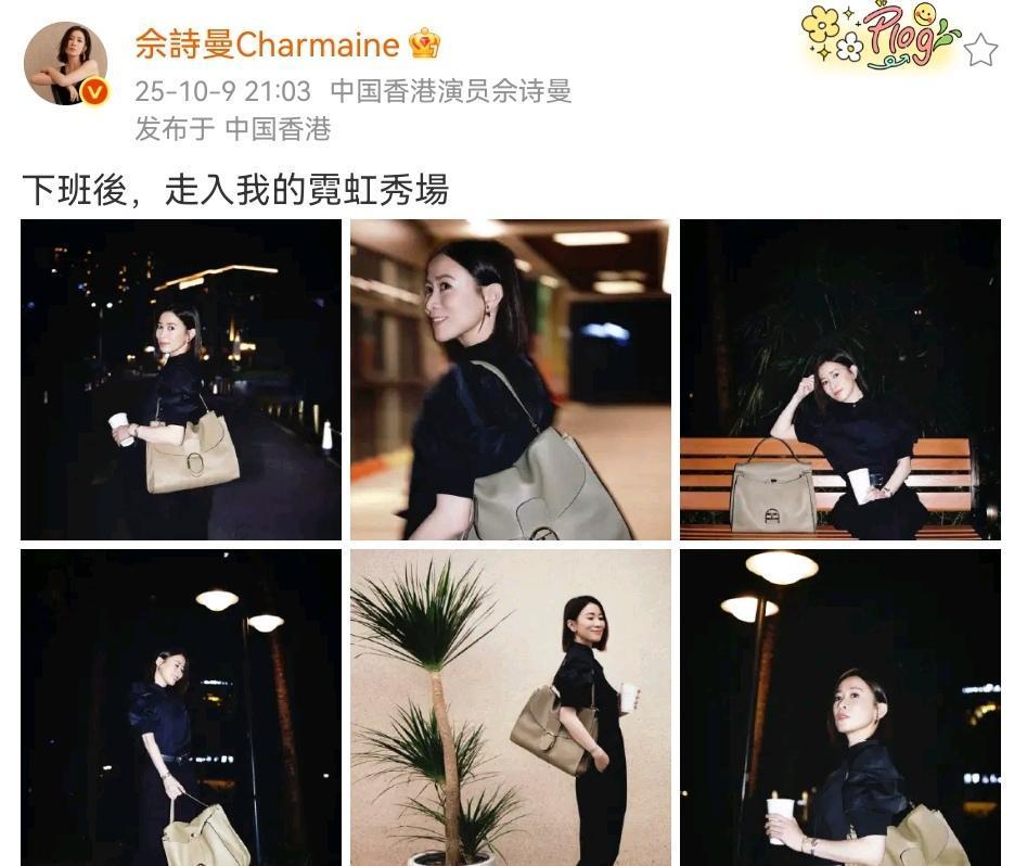 佘诗曼晒下班照,下班后的她,一身黑色穿搭走入霓虹秀场,美呆了! 当黑色遇上黑色,在霓虹灯下,佘诗曼的皮肤显得如此的白皙,美的发光发亮,比霓虹灯还要漂亮,好抢眼啊! 如果问佘诗曼这一身黑色穿搭哪里是亮点?不用说,肯定是她的包包了。 简约而大气的包包,颜色独特,款式新颖,在黑色中散发着个性光芒,魅力无敌。瞬间让整个黑色穿搭充满了吸睛指数,爱了爱了…… 各位,佘诗曼的这一身黑色穿搭,你们觉得怎么样?