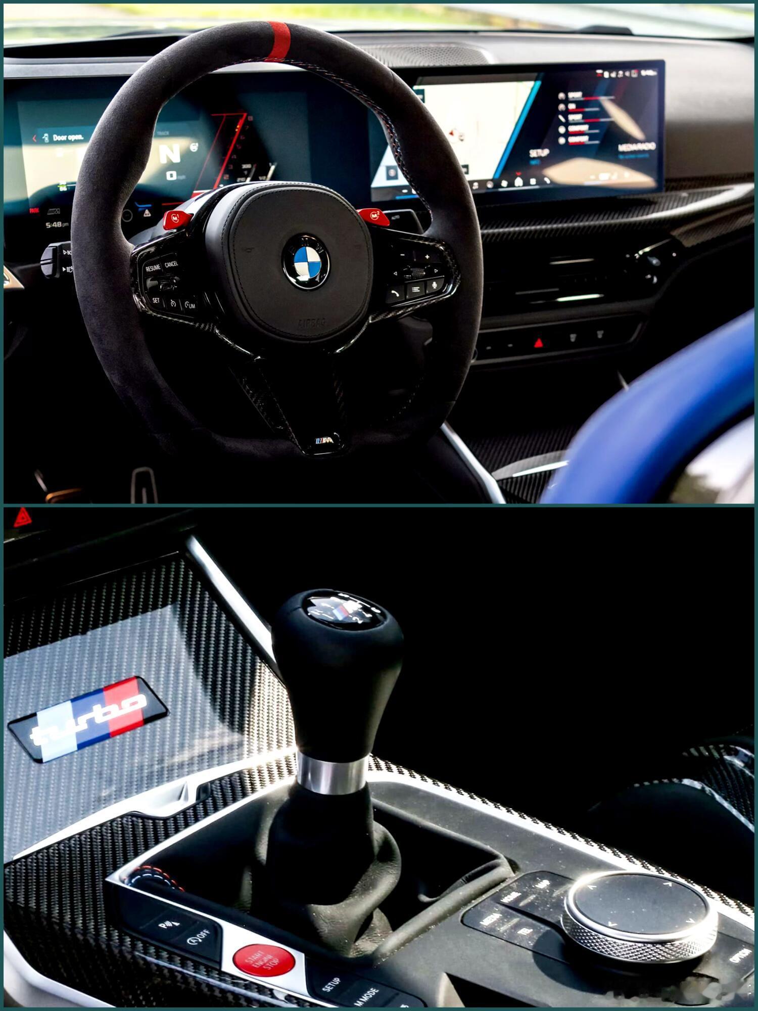 该特别版车型统一采用阿尔卑斯白车漆,并配有致敬经典的手工喷涂M三色条纹,贯穿引擎盖、后备箱及独特的碳纤维车顶。引擎盖上标志性的反写“Turbo”字样,忠实复刻了其设计灵感的经典元素。内饰方面,新车在门槛饰板和换挡区域前部也加入了“Turbo”标识。