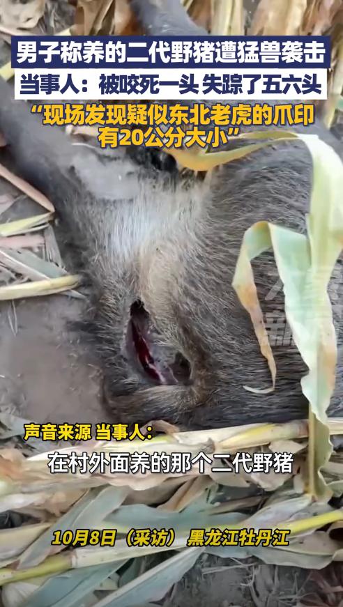 “太吓人了!”9日报道,黑龙江牡丹江,一男子在村外养了一群“二代野猪”,这天他去查看时,发现少了六、七头猪,最终在玉米地发现了一只被咬穿屁股的野猪,周围有拖拽痕迹,还发现了直径20厘米长的脚印,因此怀疑是东北虎干的!网友:老虎也掏肛吗? 黑龙江牡丹江宁安市镜泊镇湖西村的养殖户老张最近遇上了麻烦,10月初的一天早上,他去查看自己养的二代野猪,发现少了六七头,在附近的玉米地里,他找到了其中一头,场面让他倒吸一口凉气。 这头野猪的臀部被咬穿,内脏被掏空,地上留着直径约20厘米的爪印,还有明显的拖拽痕迹,老张今年春天在这附近见过东北虎,他第一反应就是老虎干的。但这个判断在网上引起了争议。 很多人质疑,老虎不是应该咬喉咙吗?从屁股下手听起来更像是鬣狗的套路,还有人觉得可能是熊或者猞猁,毕竟它们的脚印也够大,力量也足以制服野猪。 其实这种捕食方式并不奇怪,野猪的颈部和肩部皮肤特别厚,像穿了层天然护甲,正面攻击很容易受伤,从防御薄弱的后部下手,反而是更聪明的选择,吉林长白山的监测数据显示,东北虎捕食野猪时会多次扑咬,用强大的咬合力快速制服猎物。 从现场痕迹来看,这次袭击应该是大型猫科动物所为,20厘米的爪印尺寸,基本排除了猞猁的可能,它们的脚印通常只有10厘米左右,熊的爪印虽然够大,但形状不同,而且熊更喜欢翻找食物,不会这么干净利落地解决猎物。 东北虎是现存体型最大的虎亚种,成年雄虎体重可达250公斤左右,它们的领地范围很大,雄虎可达500平方公里,入秋后山里的野生猎物减少,老虎会扩大活动范围寻找食物,偶尔会靠近人类活动区域。 这其实也说明当地生态环境在改善,过去几十年,东北虎数量一度降到不足20只,如今在东北林区已经有多个稳定种群,野生动物的回归是好事,但也给山区居民带来了新挑战。 对养殖户来说,防范措施得跟上,围栏要修得结实,最好用钢筋混凝土柱子,铁丝网埋进地下至少半米深,有条件的可以装上红外监控,晚上能及时发现异常情况。 清晨和黄昏是猛兽最活跃的时段,这时候尽量不要单独进山,如果必须去山里,最好结伴而行,随身带个哨子或者手电筒,遇到情况能发出声音吓退野兽。 “好家伙,直径20厘米的脚印?这快跟我家洗脸盆差不多大了!感觉这玩意儿一巴掌下来,小轿车都得晃三晃。” “说实话,第一反应也是老虎不会这么“不讲武德”去掏肛吧?不都是直接锁喉吗?但看了楼下老哥们的科普,好像有点道理,野猪脖子那块皮糙肉厚还有鬃毛,跟穿了防刺服似的,从后面下手确实是“性价比”更高的选择,这老虎是个懂行的“老师傅”啊。” “不过我也觉得不一定是老虎,熊瞎子的可能性也不小,那家伙站起来块头更大,巴掌也够分量,而且吃东西比较邋遢,祸祸成这样就说得通了。” “猞猁的话,感觉体型对不上,它弄一头野猪可能还行,一口气干翻六七头?感觉难度太大了,更像是团伙作案。” “最惨的还是养殖户大哥,这损失可不小,辛辛苦苦养的,一下没了这么多头,看着都心疼。” 住得离山近的地方,确实得加强防范,光是普通栅栏估计够呛,得弄结实的围墙或者通电网吧? 这说明啥?说明咱们这生态环境真是变好了,连这种顶级猛兽都频繁现身了。 但怎么在保护它们和保障咱们老百姓财产安全之间找个平衡点,真是个大学问,总不能眼看着自家牲口被拖走吧?是不是可以考虑一些补偿机制? 如果真是老虎,它尝到甜头了,会不会下次还来?这玩意儿可是记住了“免费食堂”的位置了。 假如经过专家鉴定,确认就是东北虎干的,你觉得应该怎么处理这只老虎?是设法驱离,还是应该抓起来转移到更深的深山老林里去?说说你的看法? 信源:大象新闻