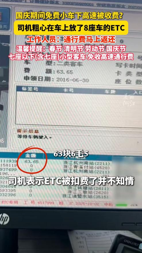 “这名收费员火了!”9日报道,浙江杭州,一司机开小轿车下高速时,被收取了63元的过路费,眼尖的收费员发现了异常,立即给司机打去电话。原来,司机把8座旧车上的ETC设备移到小车上用,这才导致的扣费。网友:这才是为老百姓服务! 国庆假期,杭州一位司机开着小轿车下高速,ETC突然扣了63元,按理说国庆期间7座及以下小型客车免费通行,这笔费用不该扣,好在当班收费员发现了异常,及时联系车主把钱退了回来。 收费员盯着电脑屏幕觉得不对劲,刚才明明看到一辆小轿车通过,怎么会扣费呢?他仔细核对系统信息,发现这张ETC卡绑定的车辆是一辆8座客车,8座车不在免费范围内,所以系统自动扣费了。 联系上车主后,真相大白,原来车主最近换了新车,图省事直接把旧车上的ETC设备拆下来装到了新车上,旧车是8座的,所以系统还是按8座车收费,弄清楚情况后,收费员很快帮车主办理了退款。 这事听起来有点乌龙,但其实挺常见的,很多人以为ETC设备可以随便换车用,只要插上卡就行,其实不是这样的,ETC遵循“一车一卡一标签”的原则,设备和车辆信息是绑定的。 系统识别的是ETC里登记的车牌号,而不是实际通过的车辆,你开着5座车,但ETC绑定的是8座车,系统就按8座车计费,即使两辆车都是你自己的,也不能混用。 更换车辆后,正确的做法是去ETC服务网点重新办理绑定手续,如果只是换了挡风玻璃,也需要重新安装设备并激活,有些ETC设备带防拆功能,一旦拆下来就失效了,必须去网点重新激活。 节假日免费通行看起来简单,实际上有明确规定,只有7座及以下的小型客车才能免费,8座、9座的商务车和面包车都不在免费范围内,货车不管大小,也都要正常收费。 所以如果你家里有两辆车,一辆是5座轿车,一辆是7座SUV,最好给每辆车办各自的ETC,虽然麻烦点,但能避免很多不必要的问题,有些地方办ETC还有优惠,通行费能打折,算下来也挺划算。 出门前最好检查一下ETC设备,看看电子标签贴得牢不牢,卡片插得正不正,有些车主把卡拔出来怕被盗刷,结果忘了插回去,到了收费站才发现抬杆不起来。 如果对扣费有疑问,别着急,可以当场向收费站工作人员咨询,或者拨打ETC服务热线,现在大部分ETC都绑定了手机号,扣费会有短信提醒,发现问题及时反馈就行。 这位收费员的细心确实值得点赞,很多收费员看到扣费可能不会多想,但他注意到了异常并主动联系车主,这种负责任的态度,为车主挽回了损失,也让大家对高速服务有了更好的印象。 “这收费员确实够细心!现在这么负责的工作人员不多了,一般人可能就直接放行了,谁还管你扣费对不对。” “为这位收费员点赞! 要是所有单位员工都有这责任心,能给我们老百姓省多少麻烦事,建议高速公司给这个收费员发个奖励,这种正能量必须鼓励。” “不过话说回来,这司机也是心大,ETC设备怎么能随便换车用呢?这不明摆着会出问题吗?还好遇到个好收费员,不然这63块钱肯定打水漂了。” “我上次也遇到过类似情况,换车后没及时更新ETC信息,结果下高速时栏杆不抬杆,尴尬得后面车辆一直按喇叭,所以大家一定要注意,ETC必须“一车一卡”,不能混用。” “这个案例给我们提了个醒:节假日免费通行政策只针对7座及以下客车,而且必须是使用本车ETC,8座车就算长得像7座车也不能免费,这一点很多人容易搞混。” “现在很多家庭换车频繁,但往往忽略了ETC设备也要跟着办理变更手续,最好在卖车时就把ETC注销,买新车后重新办理,虽然麻烦点,但能避免后续问题。 ” “据说有些地方的ETC设备有防拆功能,一旦从玻璃上取下来就会自动锁死,需要去银行重新激活。” “不知道这位司机是怎么成功移机的,看来也是个技术活,其实收费员完全可以选择视而不见,多一事不如少一事,但他选择了主动联系司机退款,这种职业操守值得学习。希望他们单位能好好表扬一下。” 这个事情也反映出ETC系统其实挺智能的,能够准确识别车辆信息不符,不过建议系统能否在扣费前有个提示,这样就能从源头上避免错误扣费。 你们在高速收费时遇到过哪些印象深刻的经历?是遇到过类似暖心工作人员,还是也曾因为ETC问题闹过乌龙?一起来分享下你的故事吧! 信源:杭州发布
