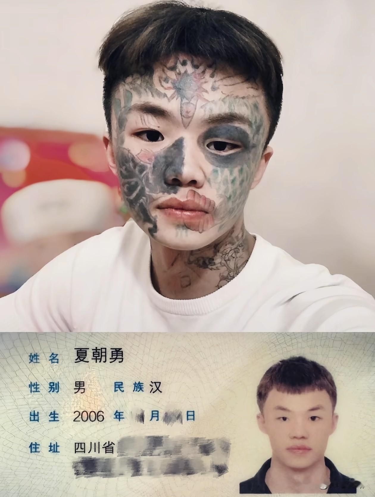 纹面男孩夏朝勇从9岁开始纹身,13岁在脸上纹身,曾把纹身当“护身符”,如今已经洗了3次纹身,再洗两次就干净了。他表示:洗纹身比纹身痛10倍,年轻时不懂事,现在后悔不已。 广东,夏朝勇今年19岁,他的童年过得挺苦,妈妈早早就走了,爸爸重组家庭后,他跟着奶奶长大,还总被欺负,心里特别缺乏安全感,觉得没人能保护自己。 13岁那年,他看见街上有人有纹身,给人感觉就不好惹,天真地以为把纹身纹在脸上,别人就不敢欺负自己。 后来他发现,满脸纹身的样子在短视频平台很吸引眼球,能赚钱,巅峰时一天能赚几万,甚至在酒吧一晚就打赏别人20万,这种被追捧的感觉让他更沉迷,全身纹满了30多个图案。 热度退下去之后,纹身带来的全是麻烦,身份证都办不了,找工作更是次次碰壁,用人单位一看到他满脸纹身,基本都直接拒绝。 2022年,他下定决心洗掉纹身,到今年10月,他已经洗了3次,脸上和脖子上的纹身淡了很多,再洗2次,就能清干净。 有网友觉他挺不容易的,小时候被欺负才走了弯路,他现在能回头,主动去洗纹身已经很不错了,希望他以后能好好生活。 大多数网友都表示理解他的过去,肯定他的现在,也提醒更多人别重蹈覆辙,没人再觉得满脸纹身很酷,冲动的代价要自己扛,选择前一定要想清楚。