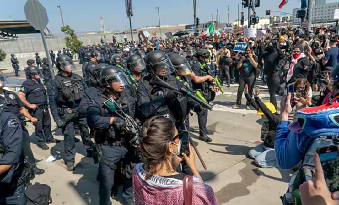 洛杉矶乱局:特朗普要抓州长,哈里斯开火,两党互撕的政治算计 特朗普真要对加州州长动手?签署派兵备忘录才48小时,被问到是否赞成逮捕纽森时,他直接叫好太赞了。前副总统哈里斯立马开炮,骂他故意挑事制造分裂,洛杉矶的乱局彻底变成两党互撕的戏台。 10月6号,移民与海关执法局(ICE)的人在洛杉矶街头搞突袭搜捕非法移民,当场就炸了锅。抗议的人群跟潮水似的涌出来,对峙冲突说爆就爆。7号特朗普就火速签了文件,把2000名加州国民警卫队调过去,这可是1965年以来头一回,总统不经州长点头就往自家地盘派兵。 谁料兵力压上去反而火上浇油。抗议的人扔石块、水瓶硬刚,警察也不含糊,非致命子弹、催泪瓦斯全用上,洛杉矶街头直接变成战场。9号更离谱的消息来了,美国北方司令部从圣贝纳迪诺县调了约700名海军陆战队员,说要保护联邦财产。美军还没真动手,洛杉矶警察先慌了,怕跟联邦军队搭不上话,到时候行动得乱成一锅粥。 加州州长纽森气得直跳脚,骂特朗普故意搅浑水,拿恐慌当幌子抓权力,说这派兵升级既没必要也没先例。特朗普为啥非要把事闹大?上台快9个月,承诺的结束俄乌冲突没影,国内通胀压不住,关税政策还招全世界骂,没半点拿得出手的政绩。非法移民是他竞选的王牌,如今拿加州开刀,既能兑现承诺,又能转移民众视线。 城市乱成这样,政客们只顾着掐架。到底是解决移民问题,还是拿民众安危当选票筹码?这账该算在谁头上?