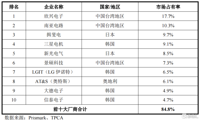 与此同时,中国台湾地区、韩国、日本仍占据全球IC封装载板产能的主导地位。