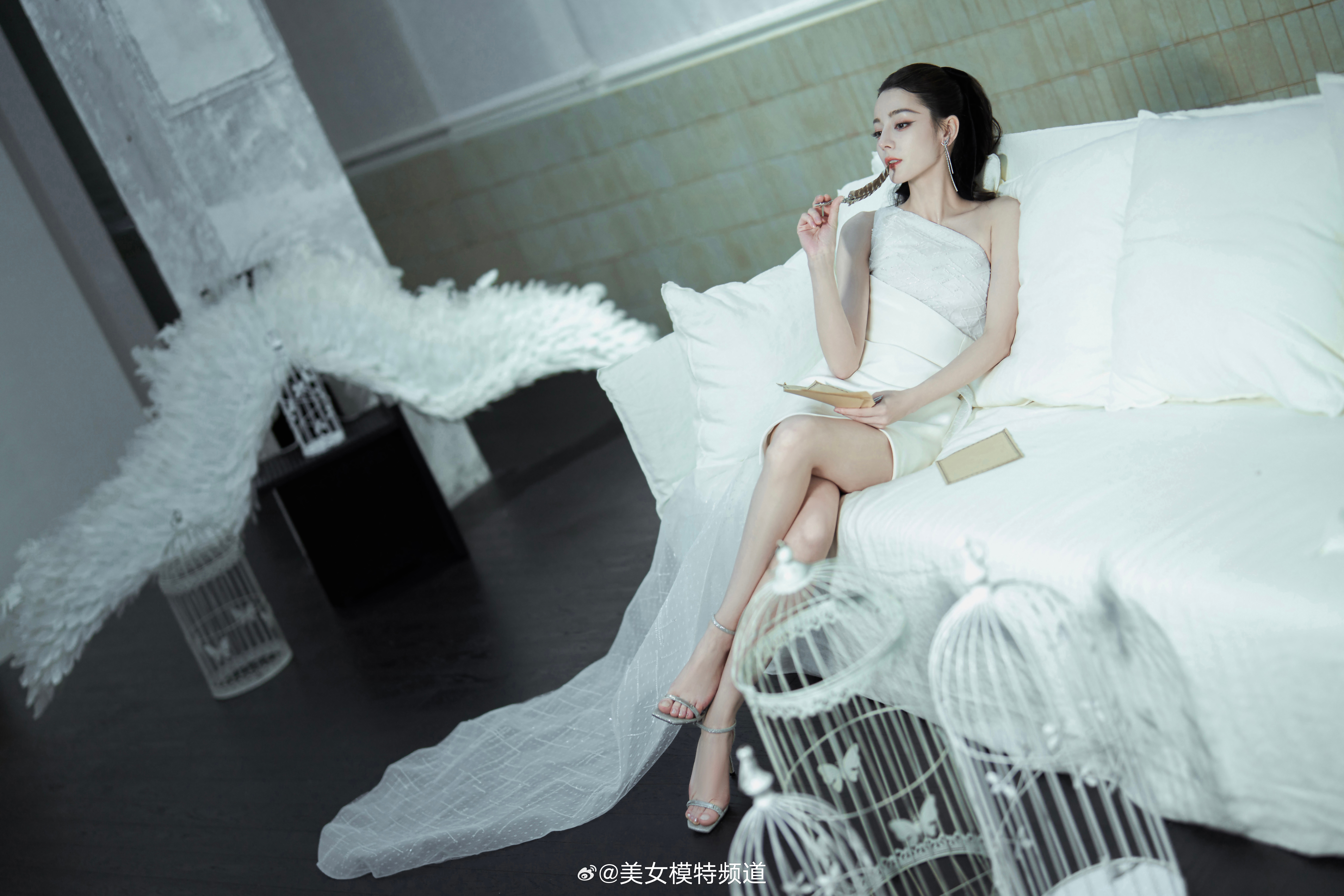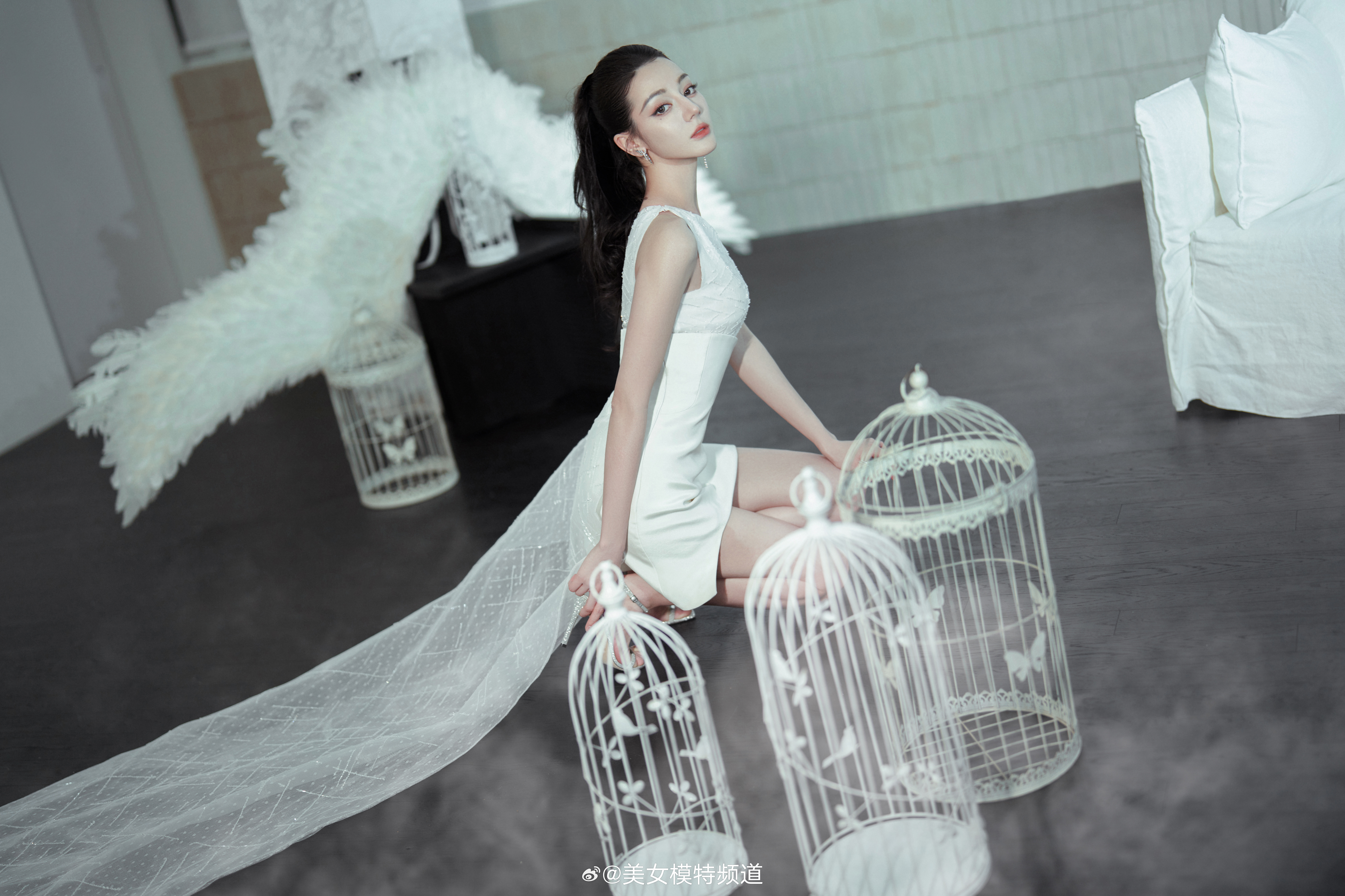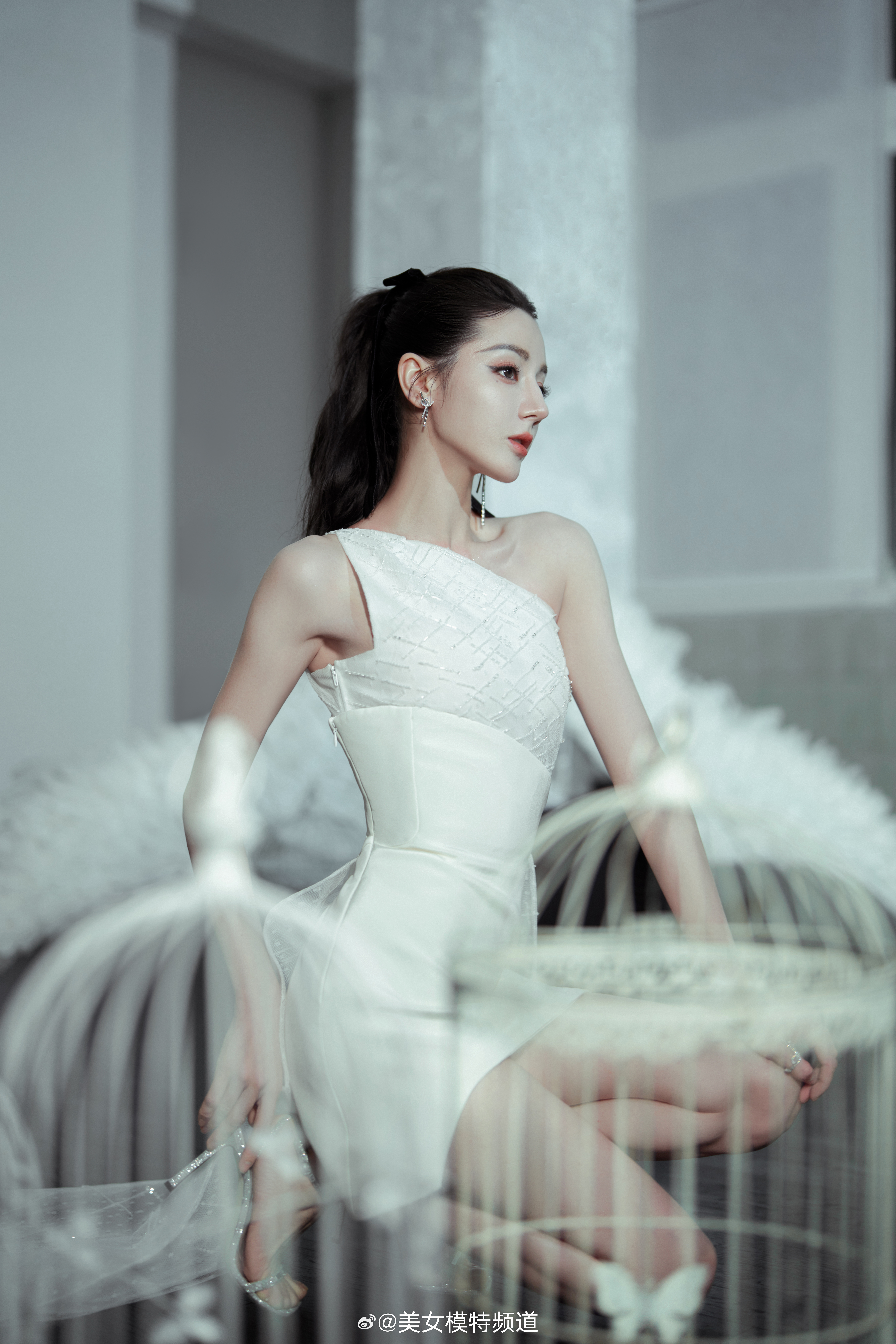 迪丽热巴穿上粉色裙子皮肤好白啊