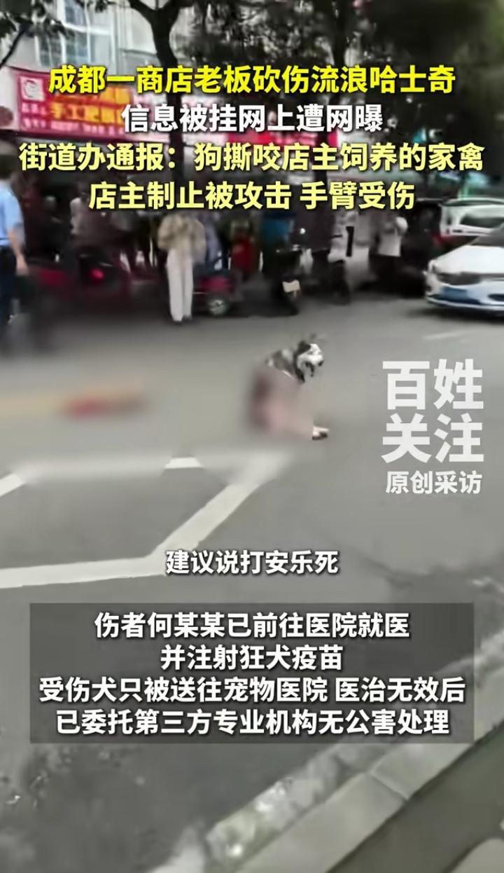 近日四川成都,一男子看见一只哈士奇在咬他家的家禽,男子上前劝阻被狗咬到手臂,火上来的男子直接一刀将哈士奇的脊柱砍断了,哈士奇躺在马路中间嗷嗷大哭! 事后有警察和爱心人士将狗送往宠物医院抢救,医生表示狗虽然能救活,但是后期会瘫痪了,还是直接将它安乐死处理的好,让它走了算了!哈士奇咬男子家的家禽在先是不对,但是男子也未免下手太重了点,毕竟也是一条生命啊!
