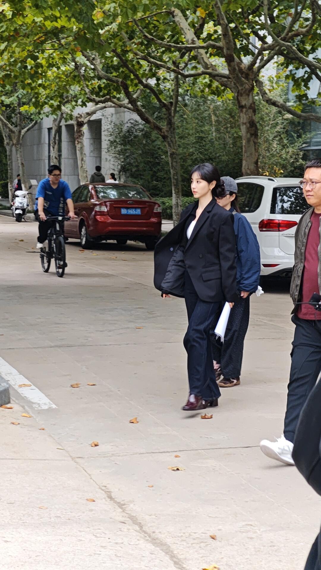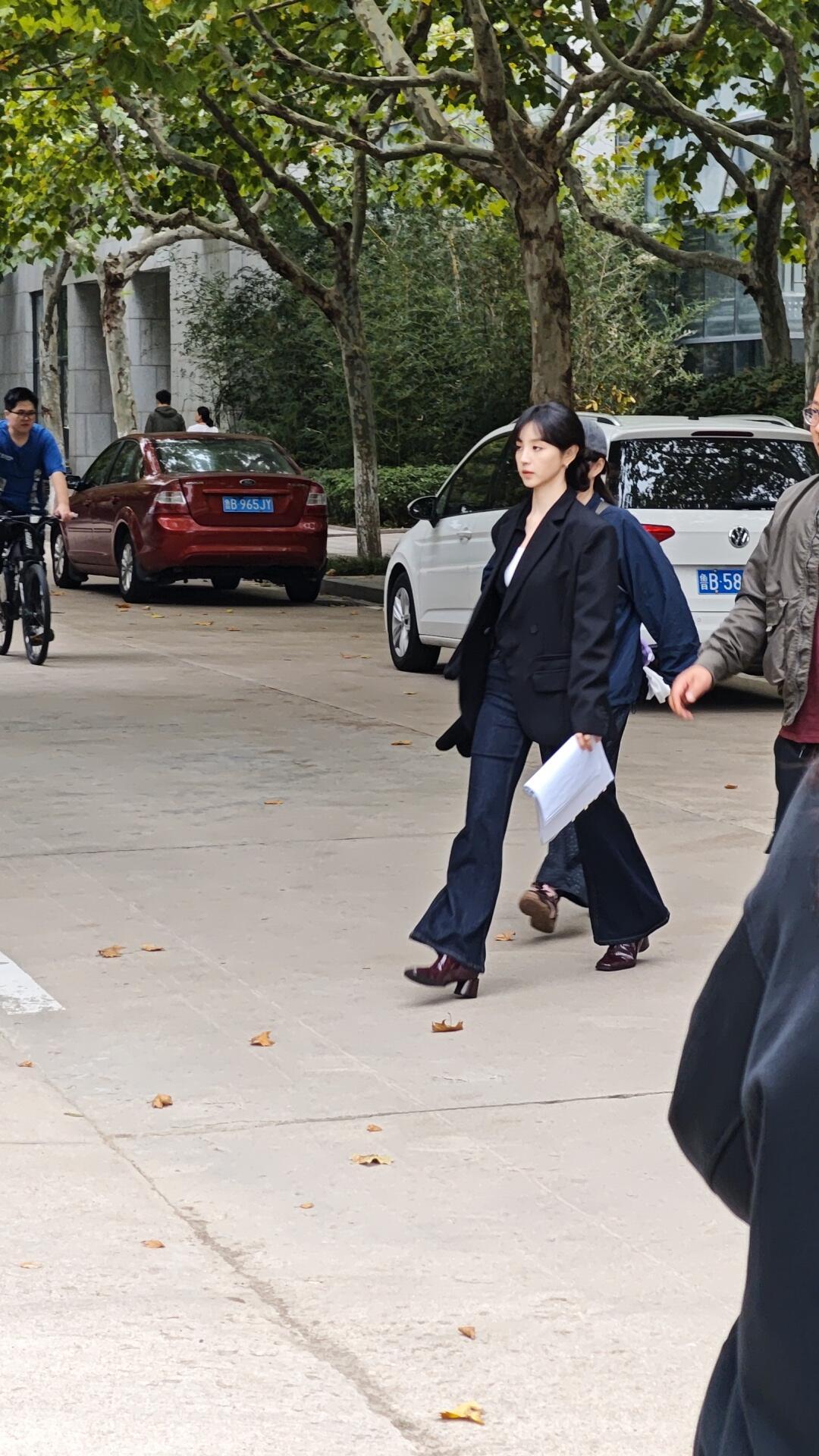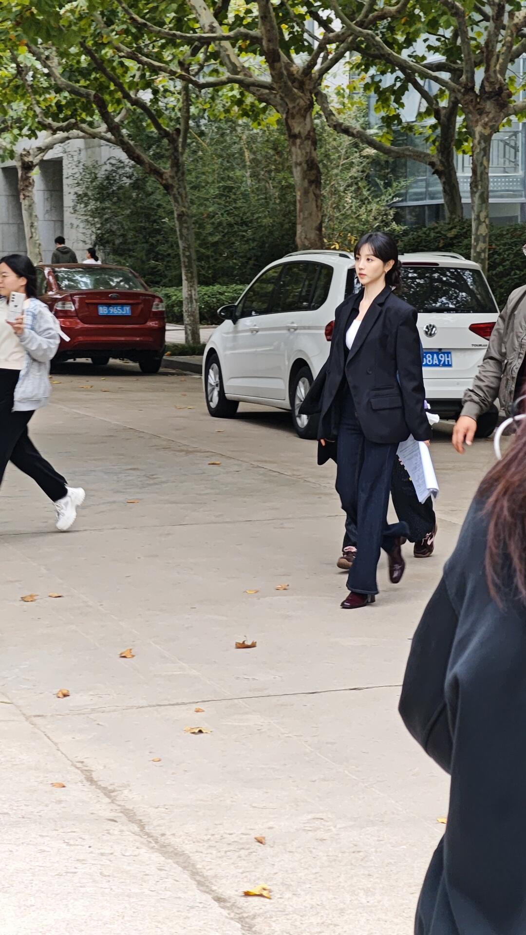 田曦薇又来石大拍戏了!本人超白超瘦脸超小比例超好超漂亮