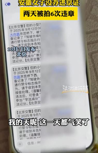 安徽一女子去北京办事,刚到北京就收到一条短信,她以为是推销的,就没有点开看,结果2天下来,她连续收到了6条短信,这才意识到不对劲,点开一看,居然全部都是违章信息,她很纳闷,自己没有乱停车,也没有闯红灯,怎么会这么多违章?不管走到哪都被拍,直接6分600没了,网友:导航都被你气笑了,根本喊不住你…… 前阵子网上有个话题吵得挺热闹,起因是安徽一位女士开车去北京,两天收到6条违章短信,罚了600块还扣了6分。 评论区里有人说“这都不知道,办进京证不是常识吗”,也有人反驳“要不是她发帖,我到现在也不清楚”,两边各执一词,把“外地车进大城市的规则盲区”这个事给吵了出来。 有网友在评论里分享自己的经历,说去年第一次开车去北京,刚进六环没多远,手机就收到了违章短信,半天下来收了3条,当时整个人都懵了。 后来打电话问了北京的朋友,才知道是没办进京证,最后只能交了罚款扣了分,“这钱花得太冤枉,纯属花钱买教训”。 还有人提到河北王先生的事,去年五一王先生开车去上海玩,不知道工作日早高峰外地车不能进内环。 那天早上他从酒店往徐汇区的景点开,也就两个小时的路程,手机里就多了3条违章短信,每条罚100元记1分,加起来300块钱、3分没了。 后来问了上海交警才明白,要么避开高峰时段,要么得办临时通行凭证,好好的旅行全被这事搅了兴致。 而引发这场争论的安徽张女士,情况更让人唏嘘。 她开了十多年车,在老家一直很守规矩,今年假期去北京前,还特意规划了路线、检查了车子,觉得肯定不会出问题。 可到北京才两天,手机里就躺了6条来自交管部门的短信,打开一看全是“违反禁令标志指示”,一条罚100元记1分,6条加起来就是600块钱、6分。 张女士当时特别懵,反复回忆这两天的行程:没闯红灯,没乱停车,也没超速,全程都跟着导航走,怎么就走哪被拍到哪? 实在想不通,她拍了个短视频吐槽,说“都被这些违章气笑了,北京开车怎么这么容易出错”。 也正是这条视频,让更多人注意到“进京证”这个容易被忽略的规则。 直到网友在评论区提醒“是不是没办进京证”,张女士才第一次听说这个词。 她赶紧上网搜,又给北京的亲戚打电话,这才搞清楚:外地牌照的客车要进入北京六环路以内的区域,还有通州区、大兴区这些特定区域,必须提前办理进京证。 要是没办,路上的电子眼会每隔4小时抓拍一次,她那6条违章,就是这么来的。 知道原因后,张女士想赶紧补办,可一查办理要求更心凉——进京证得提前1到4天在“北京交警”APP上申请,现在办已经来不及了,之前的违章记录没法撤销,只能乖乖交罚款扣分。 她后来后悔得不行,说要是出发前花几分钟查查北京的交通规矩,也不至于丢了钱又丢分。 其实不止北京,很多大城市都有类似的“限外”政策。 这些规定本质是为了缓解交通压力,可对不常去的人来说,确实容易成为“知识盲区”。 评论区里,有人觉得“办进京证多简单,免费还能线上办,外地车一年能办12次,每次用7天,去之前怎么不提前了解”,还有人开玩笑说“导航肯定提醒过她,是她自己没听”。 但更多人表示理解,说自己之前也不知道这些规则,要不是有人踩坑分享,根本没机会了解。 细想一下,张女士和王先生遇到的事,也不能全怪他们。 不是每个人都经常去大城市,平时接触不到这些政策,不知道也很正常。 可现在查信息这么方便,开车去外地前,花几分钟在网上搜搜当地的交通规则,或者在导航里输入车牌号让它提醒限行,就能避免这些麻烦。 要是因为“不知道”就吃了违章的亏,既花了钱又扣了分,还影响出行心情,实在太不值了。 这场争论和这些案例,也算给大家提了个醒:以后不管去北京、上海这种大城市,还是其他不熟悉的地方,提前了解当地的限行政策和要办的手续,准没错,别让好好的旅行,被几张违章罚单搞得不痛快。 那么到最后,你们是怎么看的呢? 如果各位看官老爷们已经选择阅读了此文,麻烦您点一下关注,既方便您进行讨论和分享,又能给带来不一样的参与感,感谢各位看官老爷们的支持!