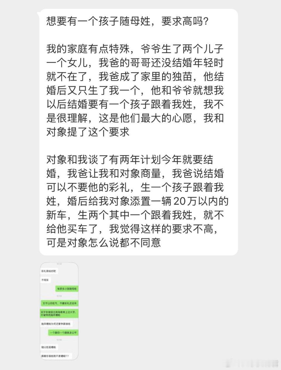 想要有一个孩子随母姓,对象接受不了,不跟他姓的孩子觉得陌生…