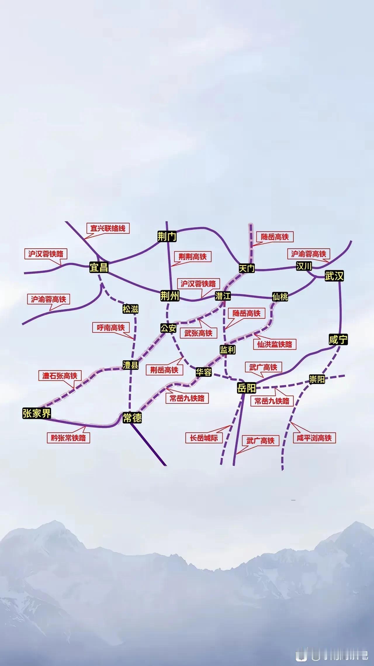 湖南和湖北之间的铁路规划,这张图是目前有想法争取的最理想状态。现实情况是,这些铁路要全部建成,恐怕难度非常大。 虚线部分,真能稳妥建设的,目前来看只有宜常高铁和澧石张高铁,这两个是已经入规的。其余的荆岳高铁,由于湖南短期内不会建设岳长城际铁路,岳阳东又没法接入,所以很难实施。其他几条就更难了。湖南高铁路线图 荆州至岳阳高铁 铁路规划 湖南高铁新线 湖南高铁枢纽 荆州铁路建设