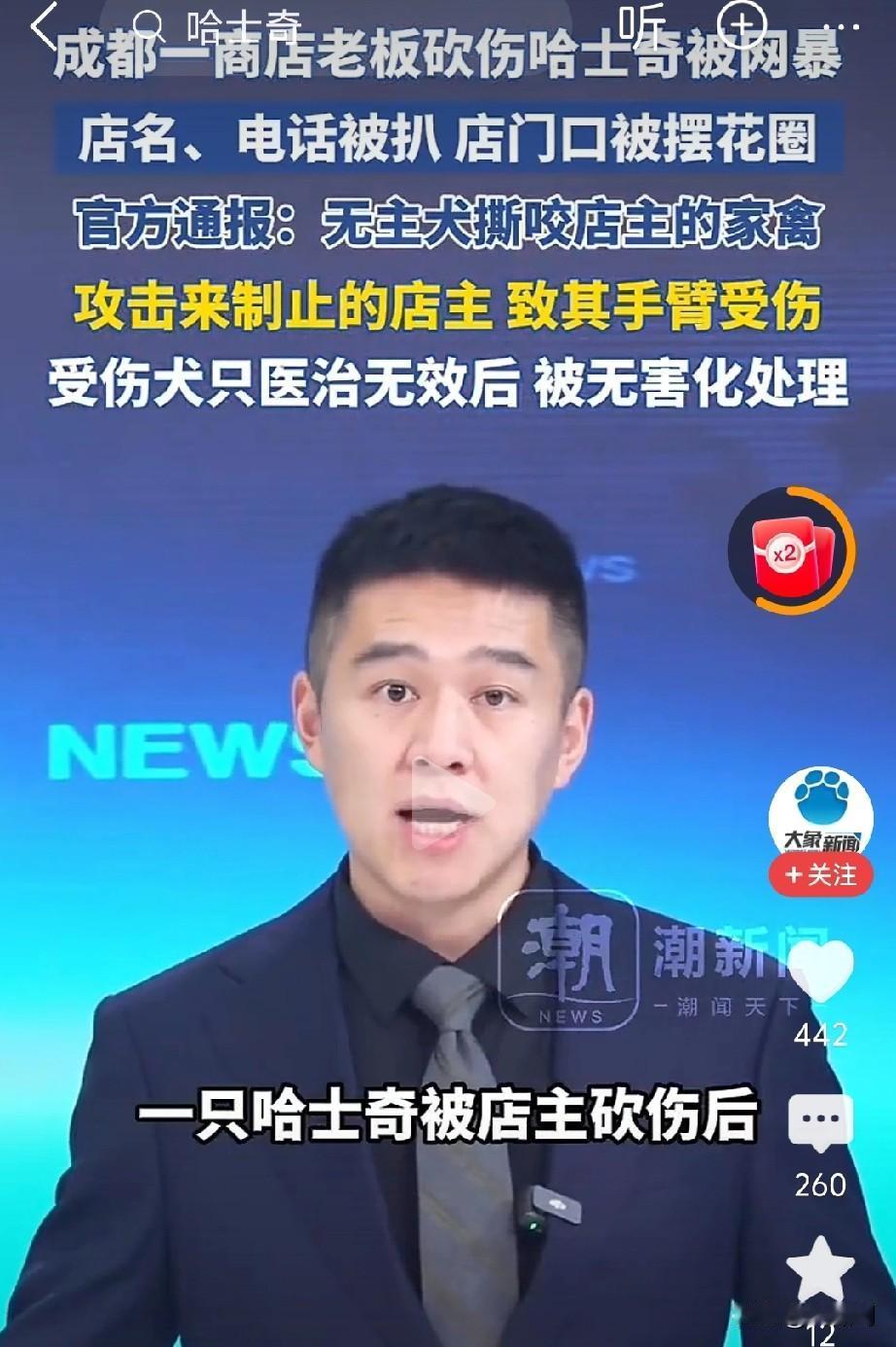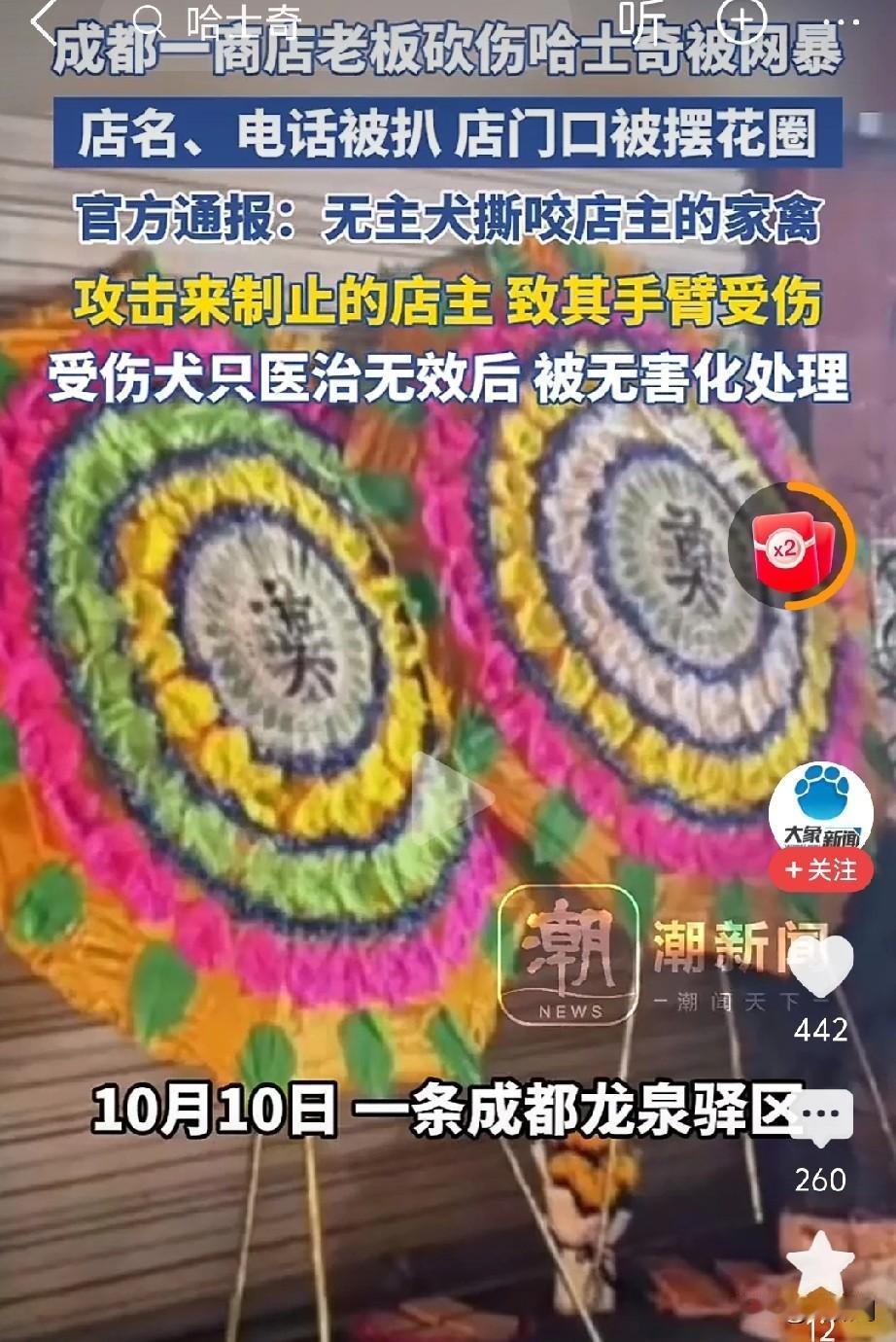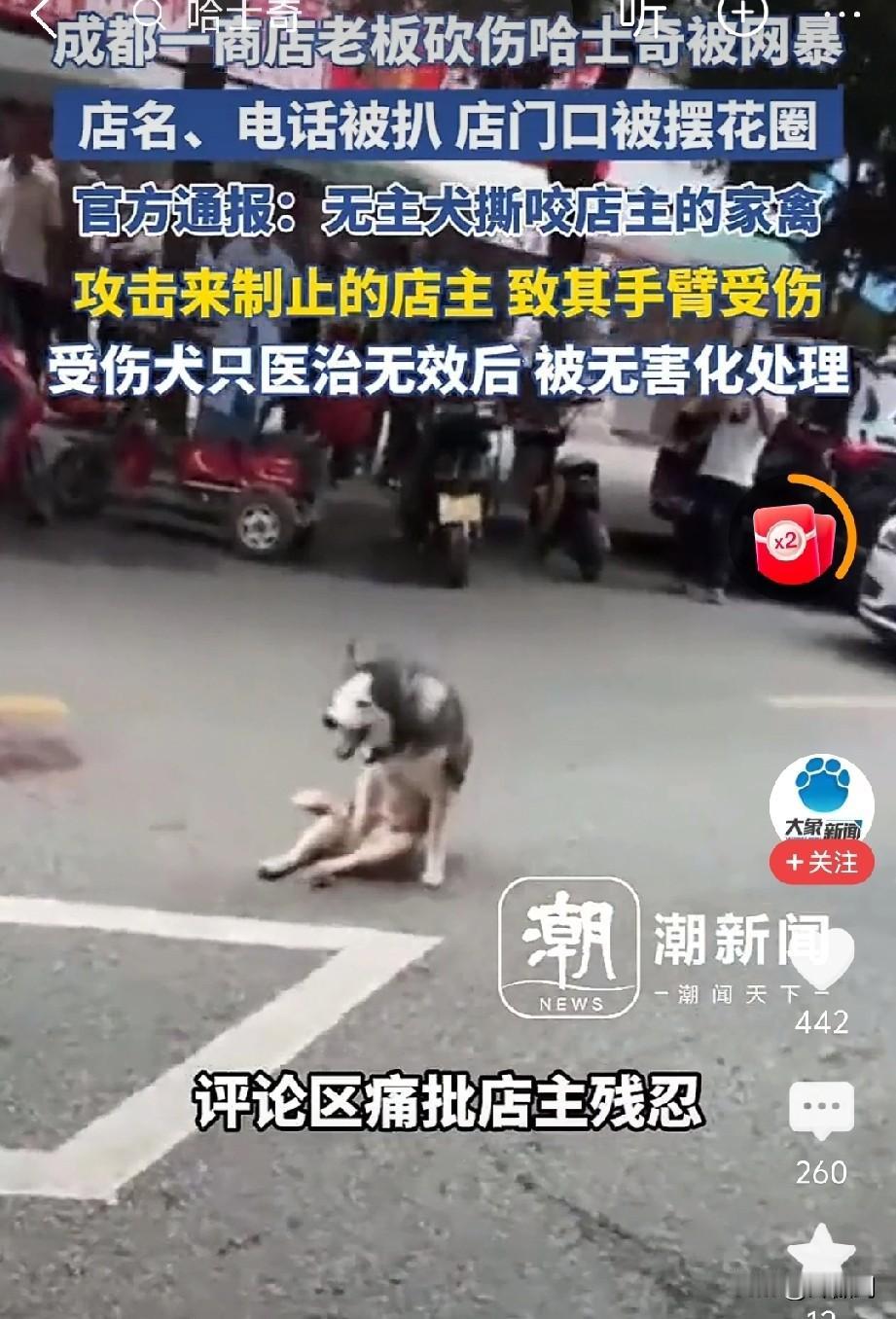 无主哈士奇咬伤家禽和制止的店主,被店主砍伤。 店主进医院并打了狂犬疫苗,而哈士奇医治无效后,被无公害处理。 商店老板电话都被扒出来了,还有人在店铺门口摆花圈。 在我们老家,只要是咬人的狗,都会被处理掉。 而且咬人的流浪狗,身上带狂犬病的可能性无限高,我不明白为什么有人会网暴店主。 人才是最重要的,难道不是吗?