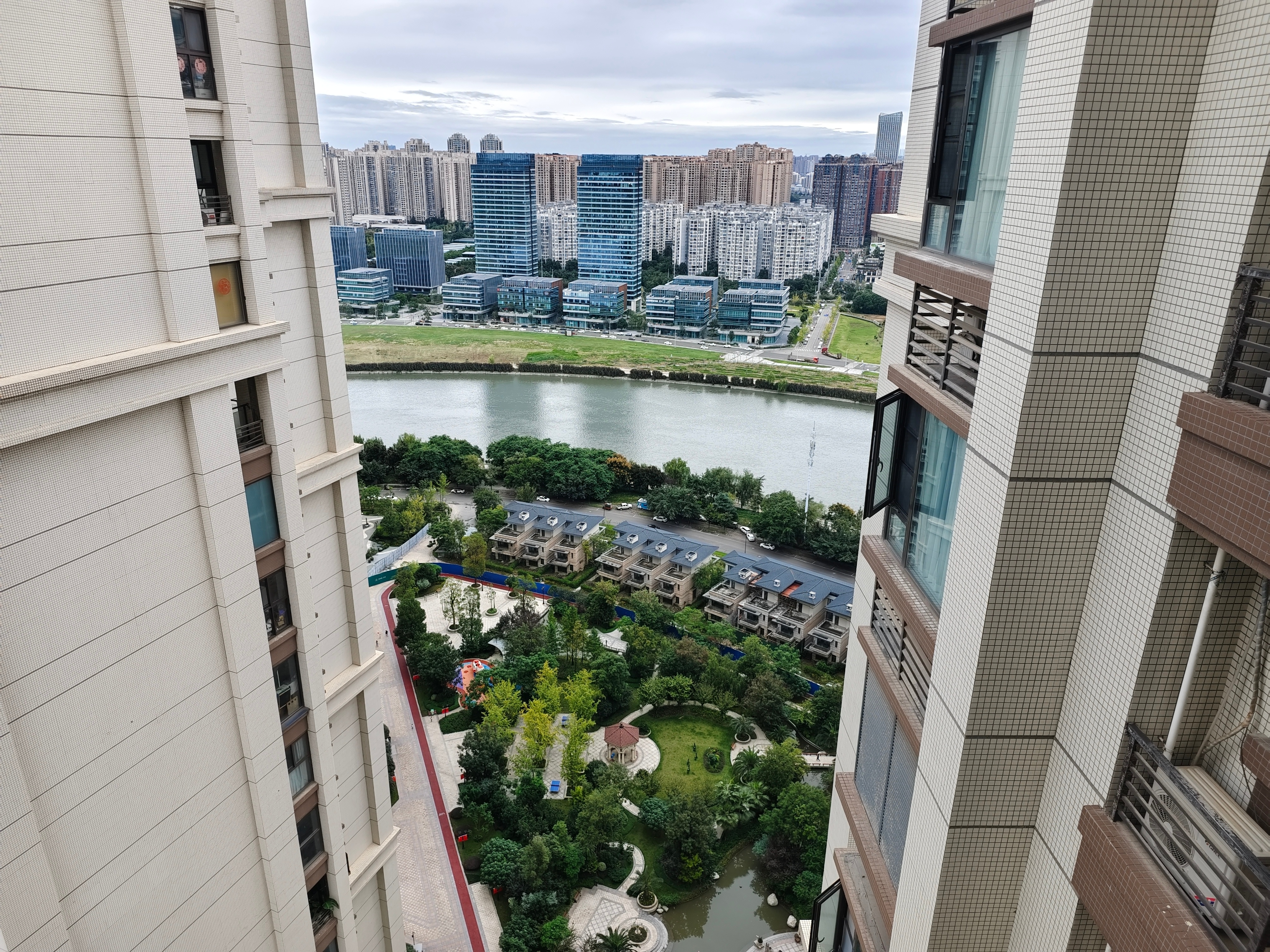楼下的联排别墅有两户在装修了,但这应该是一个人买的,两户打通作一户用[赞]