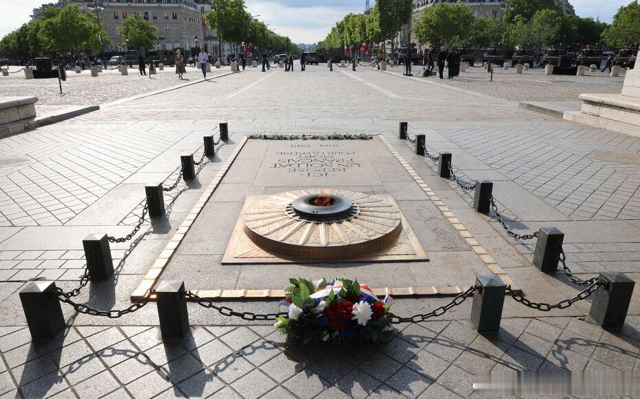 就,前两天,巴黎一名51岁女律师,喝了点酒嗑了点药之后,跑到凯旋门下的无名烈士火前,跨过护栏,对周围的花篮、物品是一顿连踢带踹。