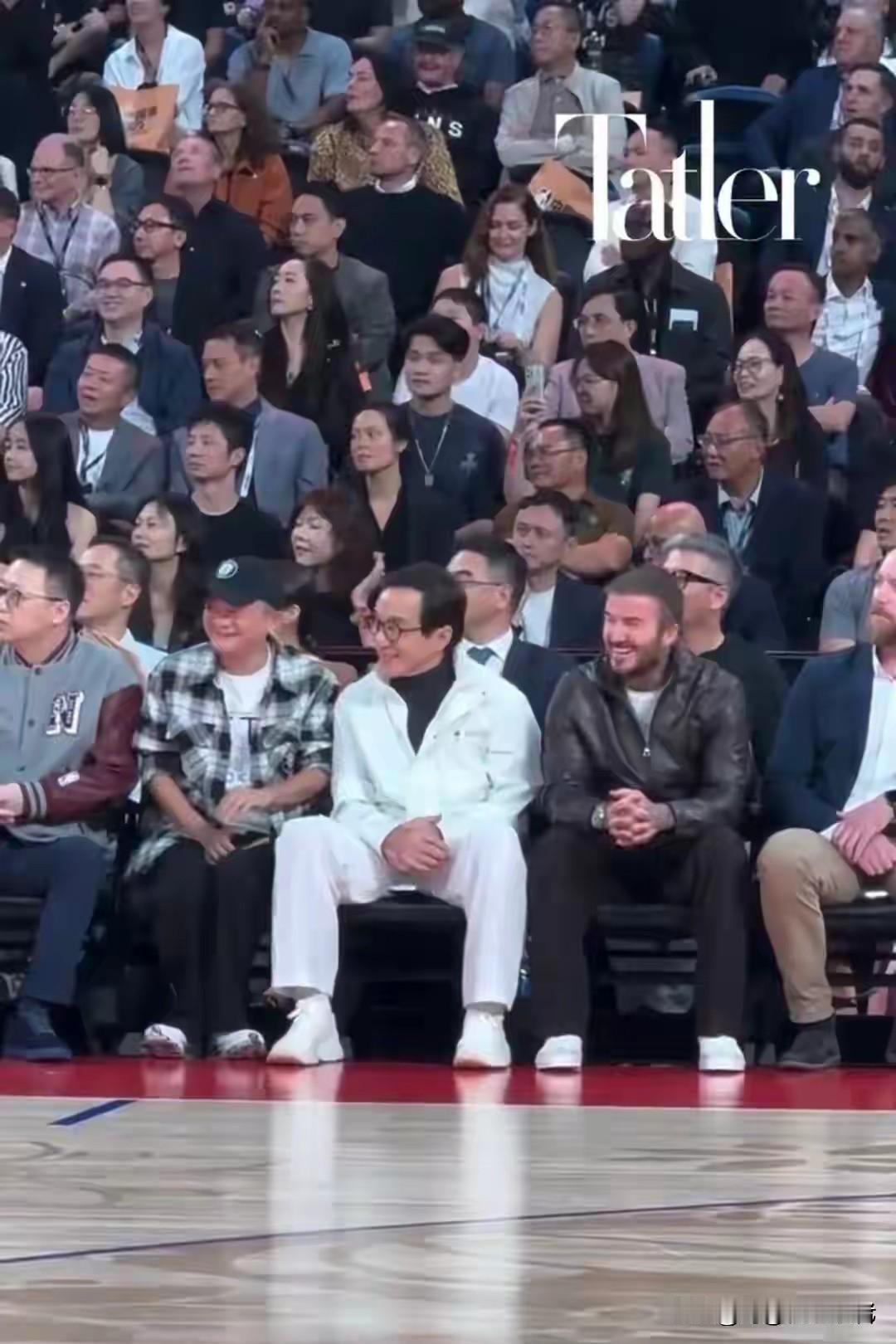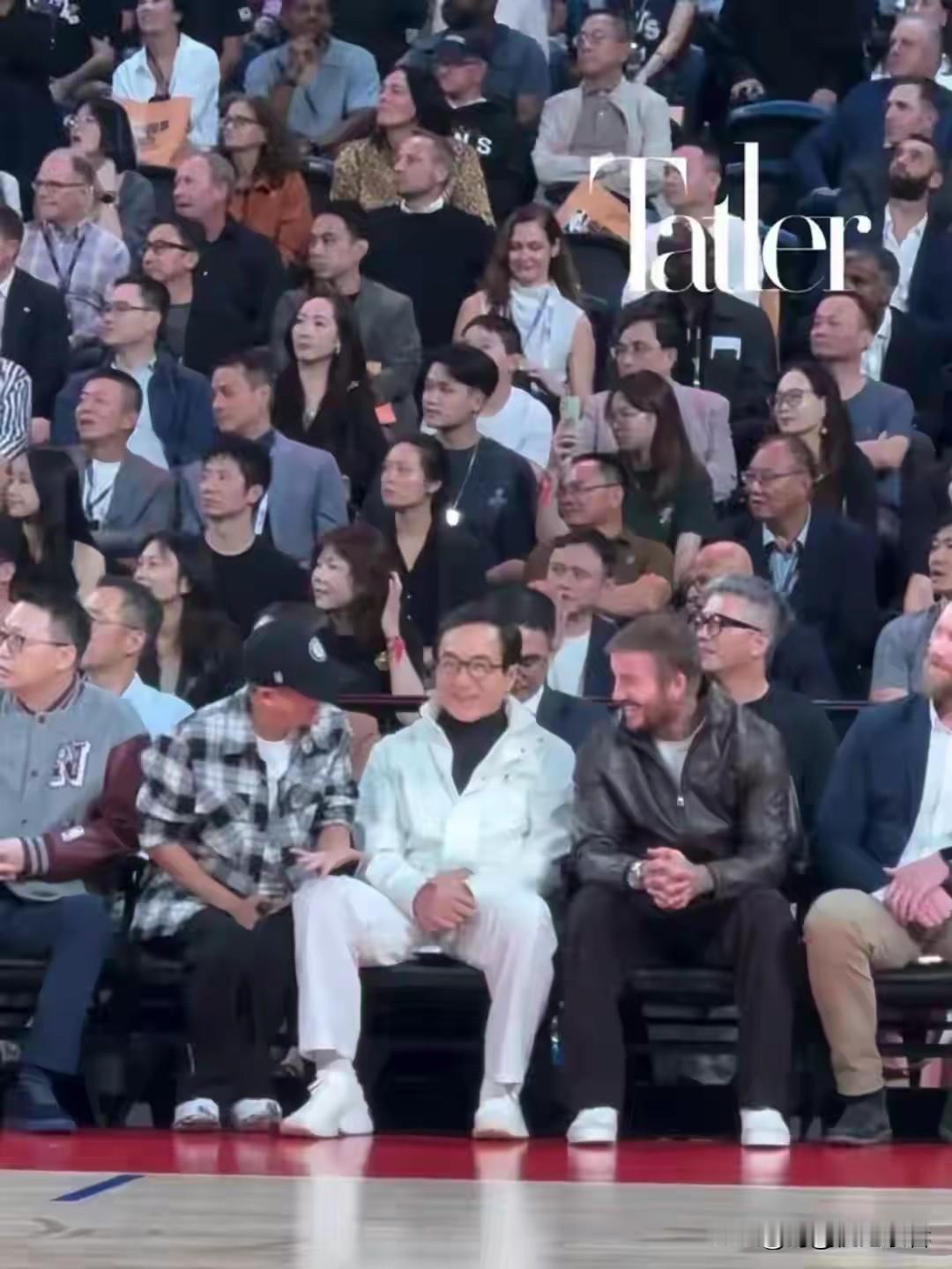 贝克汉姆的高光时刻,这晚上做梦都要笑醒。 来到澳门看NBA中国赛,身边做着成龙,马云还有阿 里的CEO。 还和姚明等一起聊天。