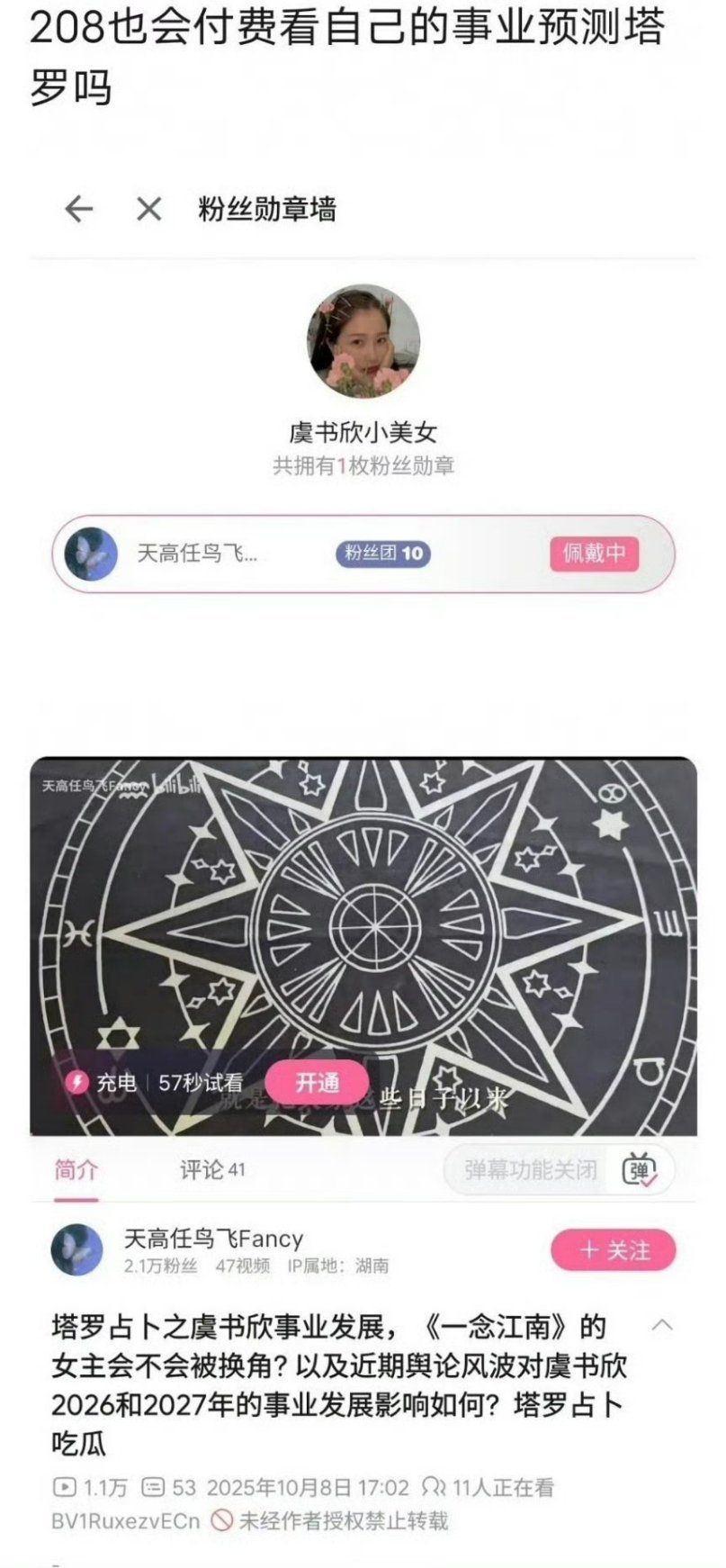 疑似虞书欣在b站付费观看自己的事业预测塔罗