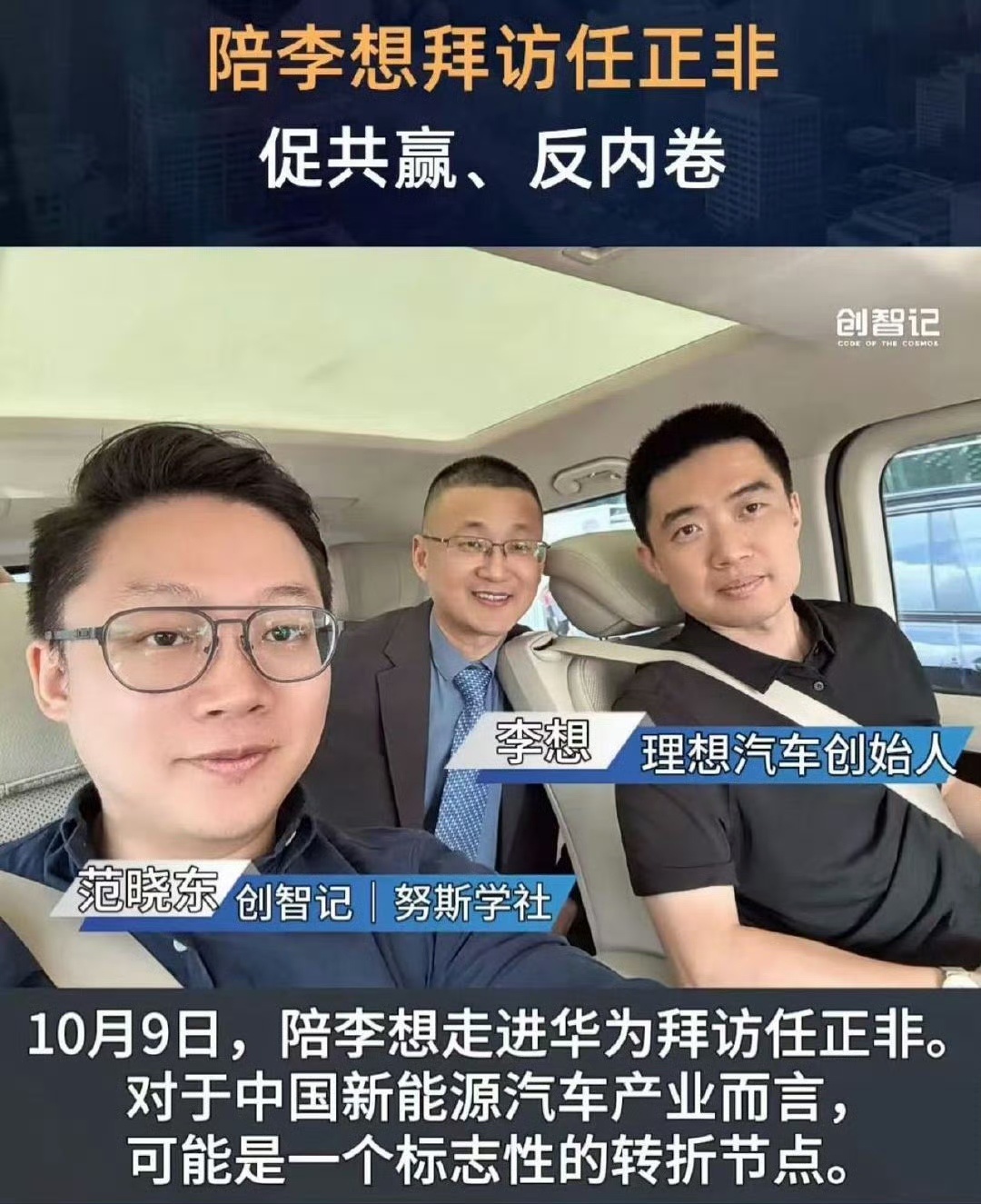 10月9日,李想去了华为拜访任正非。[666]